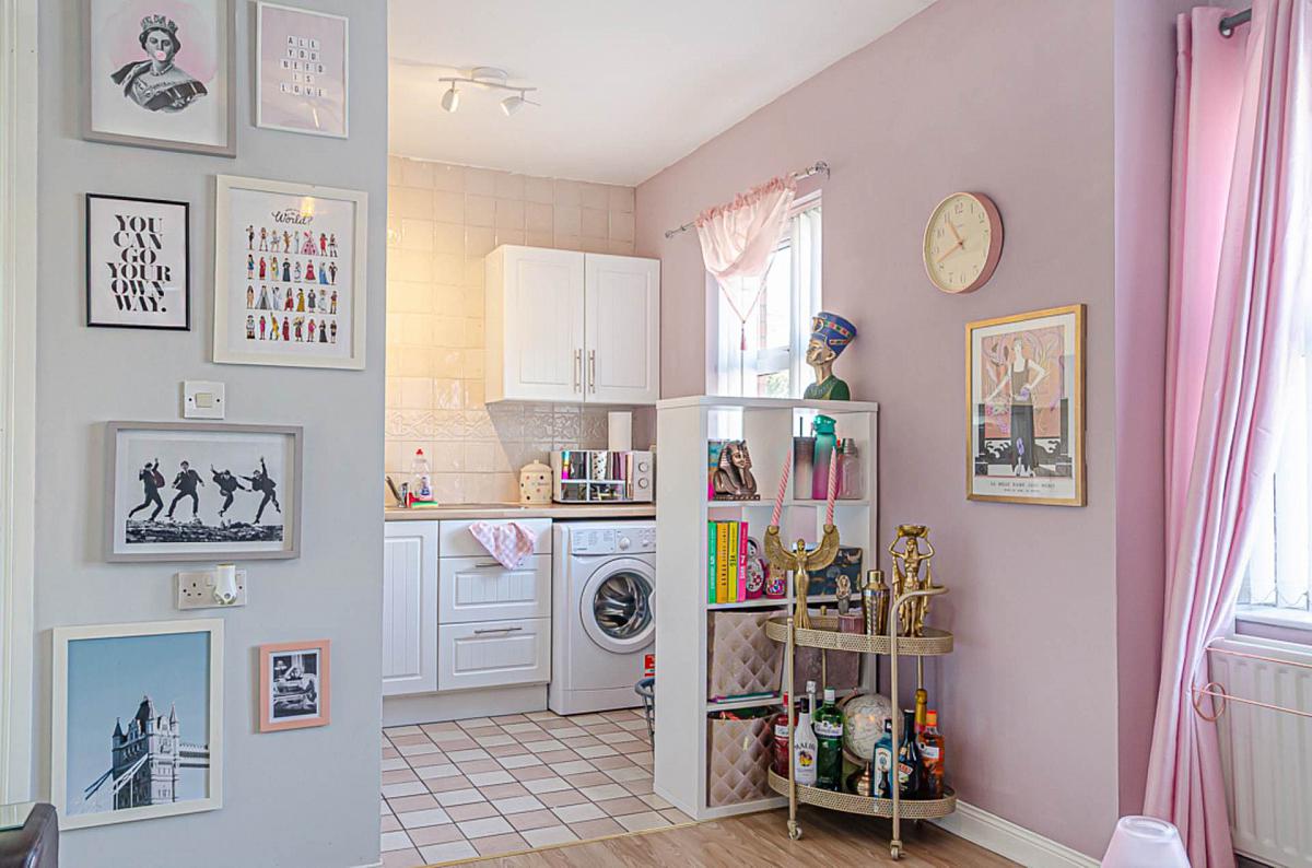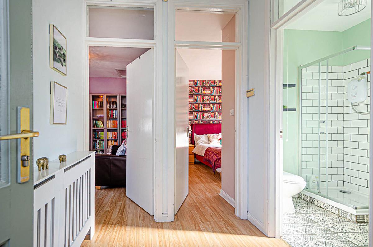 Timber laminate floor and sliding door to garden