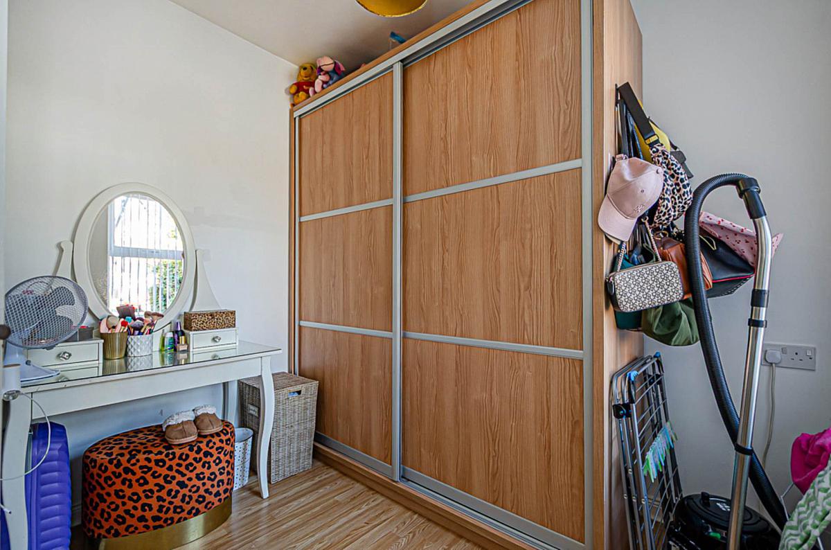 Built in sliderobes and timber laminate floor