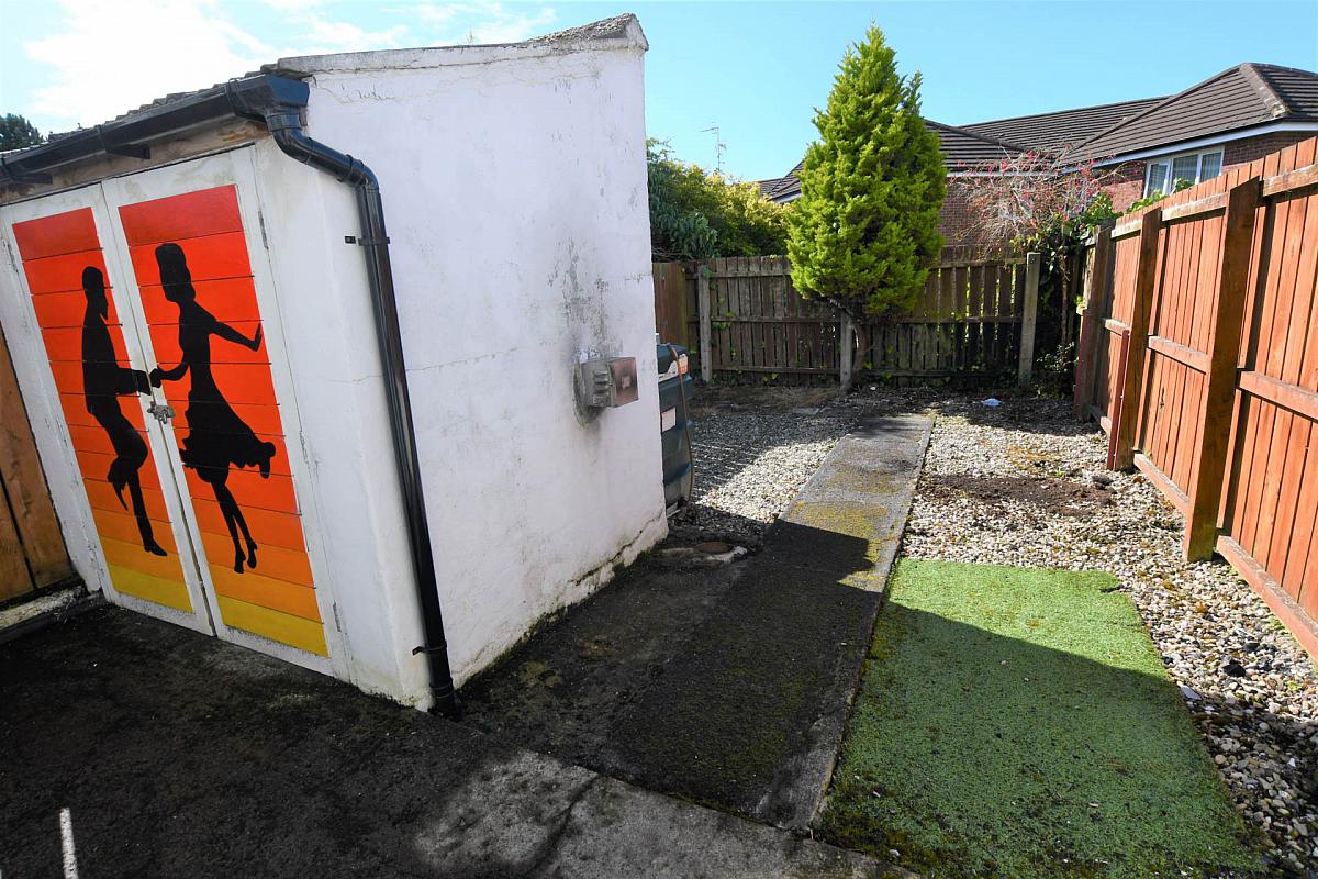 Private south facing garden, shed, oil fired boiler, oil tank, outside water tap.