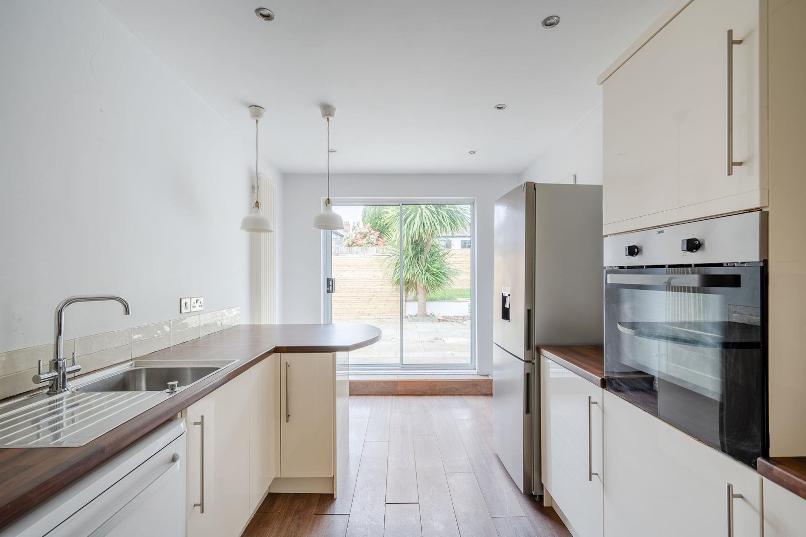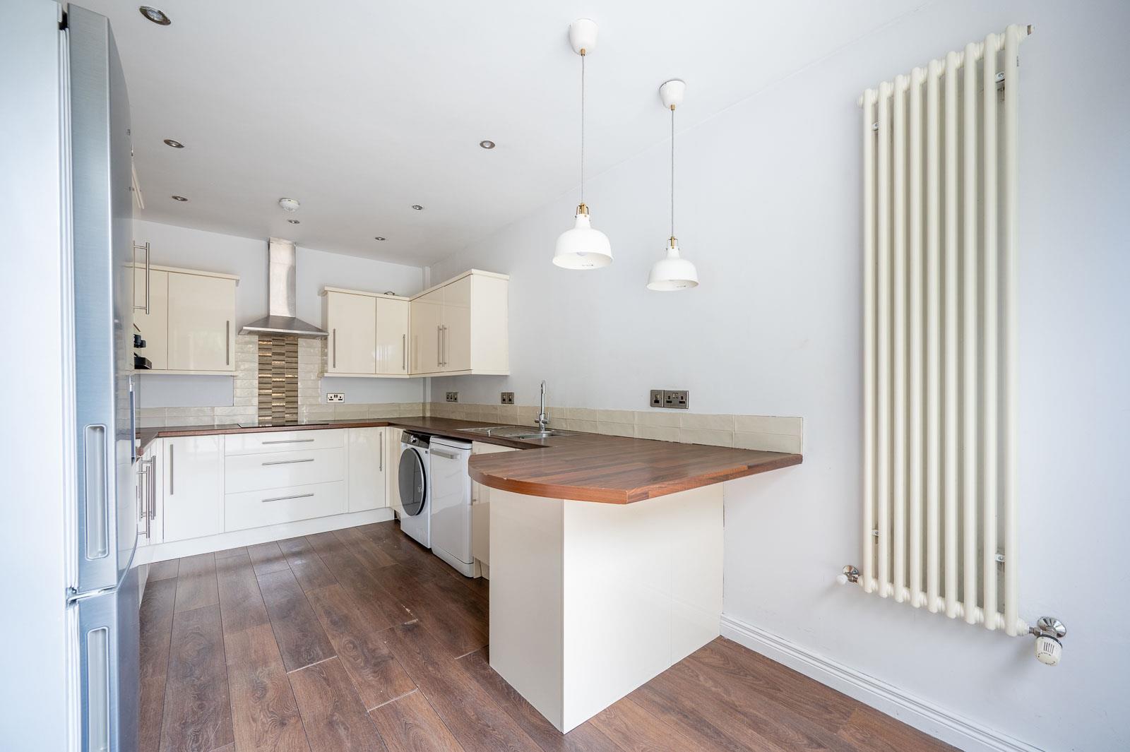 The property comprises bright and spacious entrance hall, open plan living through dining room and a modern fitted kitchen with breakfast bar for casual dining. Upstairs there are three well-proportioned bedrooms and a luxury bathroom with white four piece suite. Further benefits include gas heating and PVC double glazing. Outside there is a tarmac driveway to front and side for off street parking and gated access to superb paved rear garden with raised area in lawn.