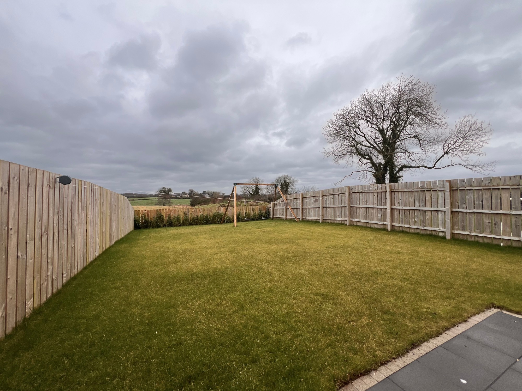 Fully enclosed garden to the rear of property laid in lawn with patio paved area & exceptional views over across the countryside.