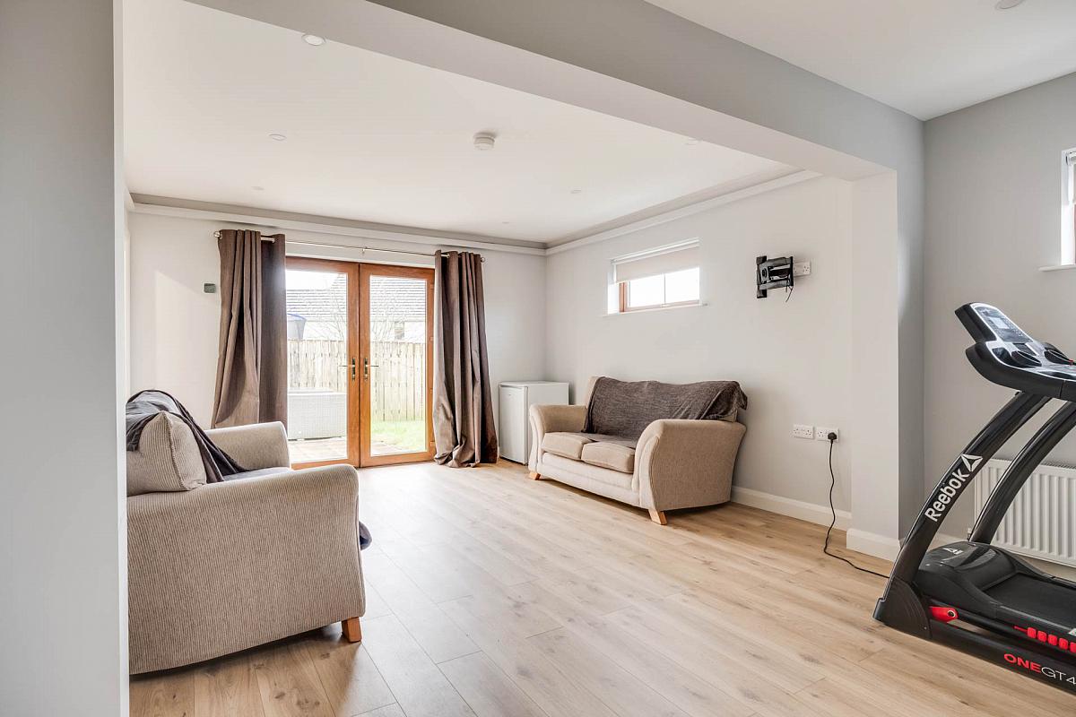 Plumbed for utility facilities, potential 2nd kitchen, PVC exterior door, glazed inset, laminate flooring.