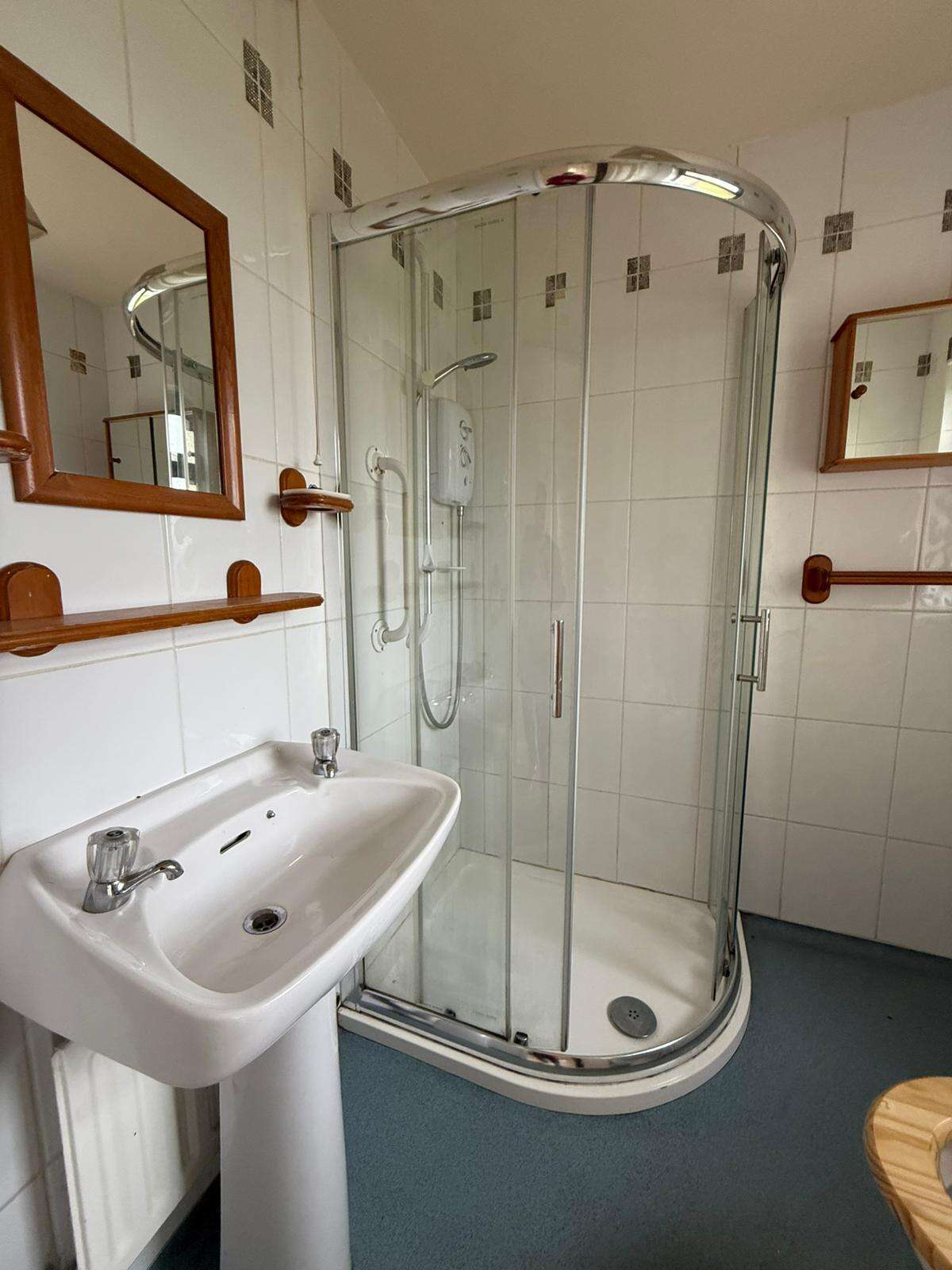 Bathroom: 5.9 x 5.4 Shower, WC & WHB.