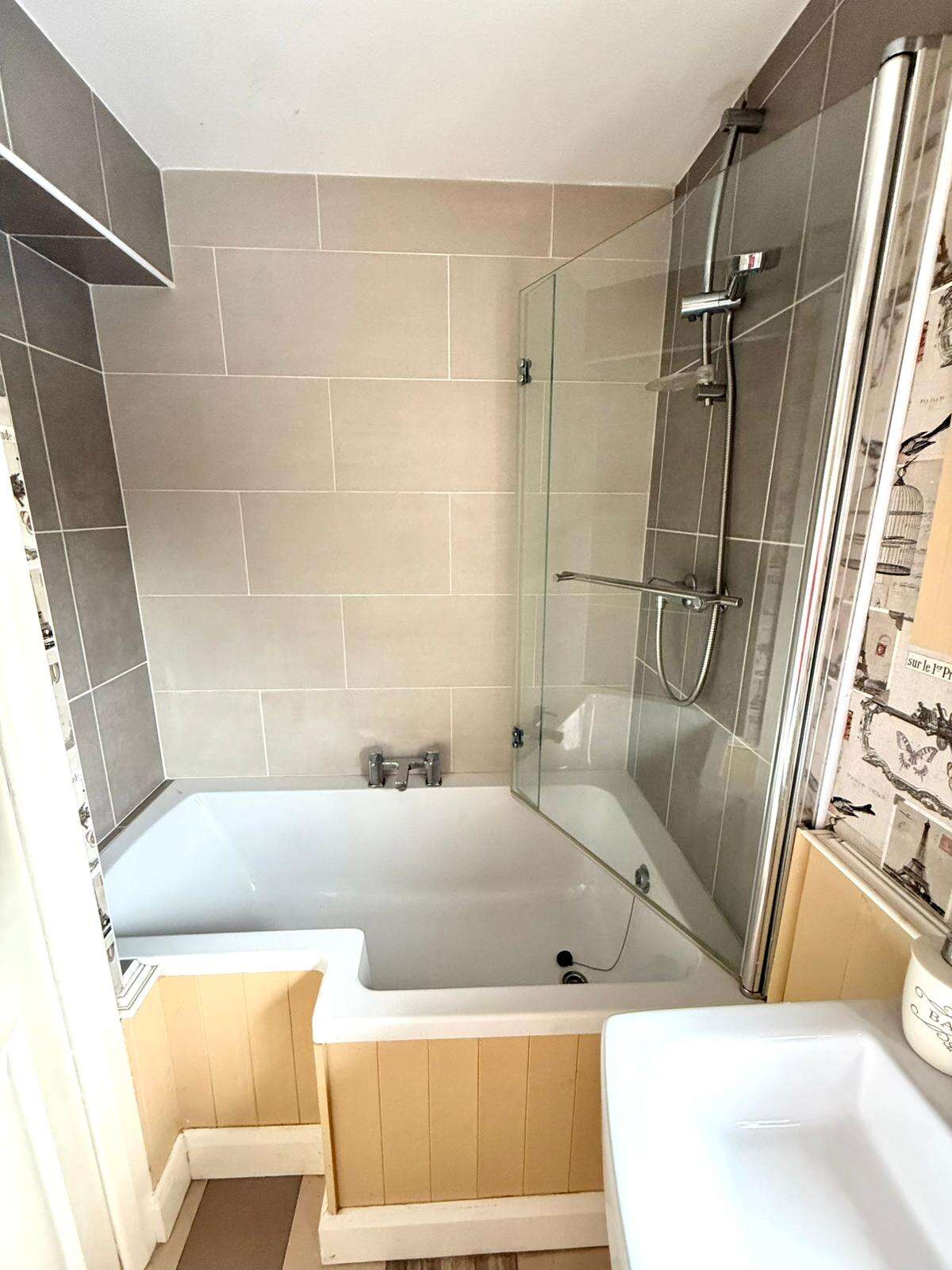 Bathroom: 8.8 x 4.0. Bath with shower over, WC & WHB.