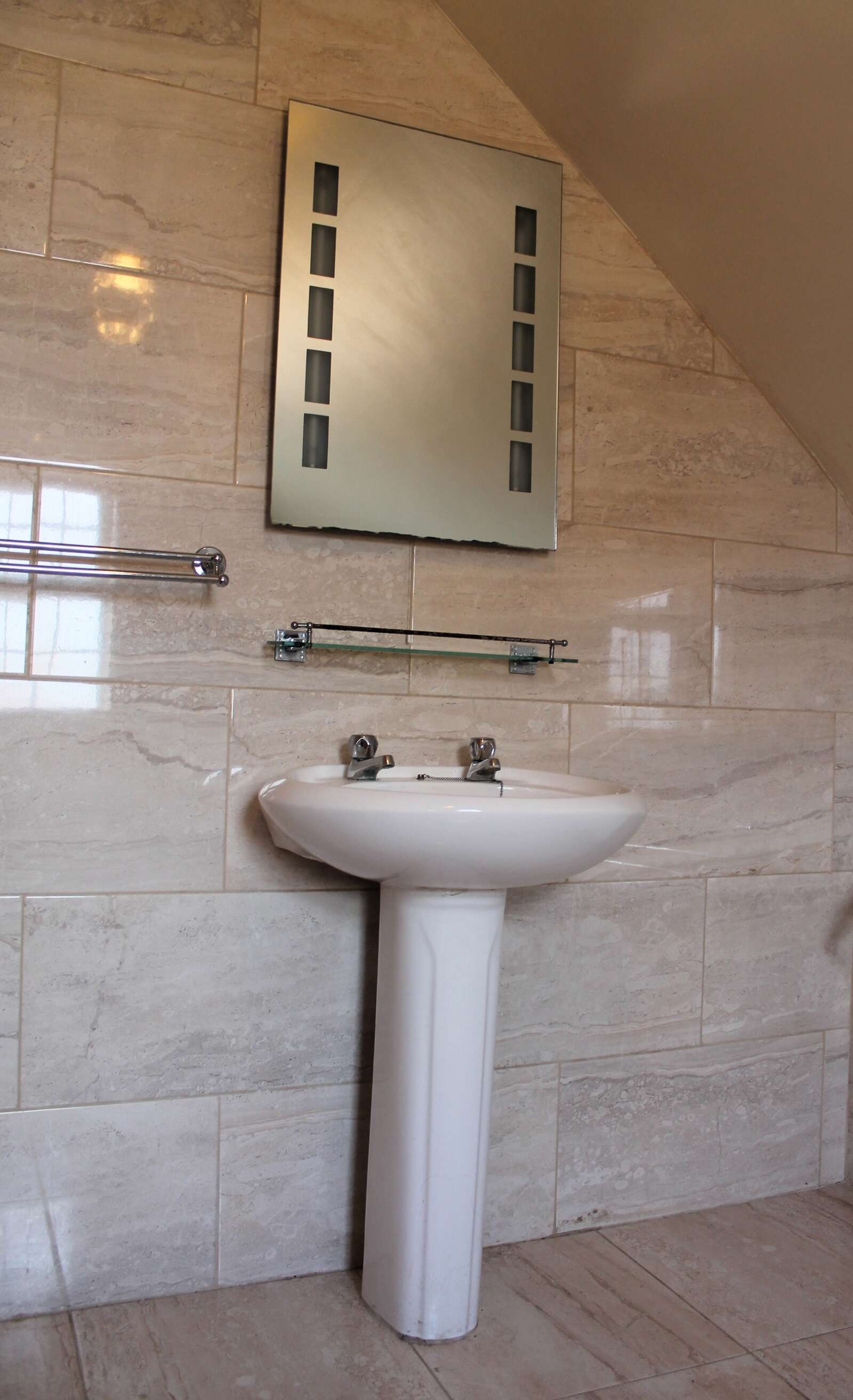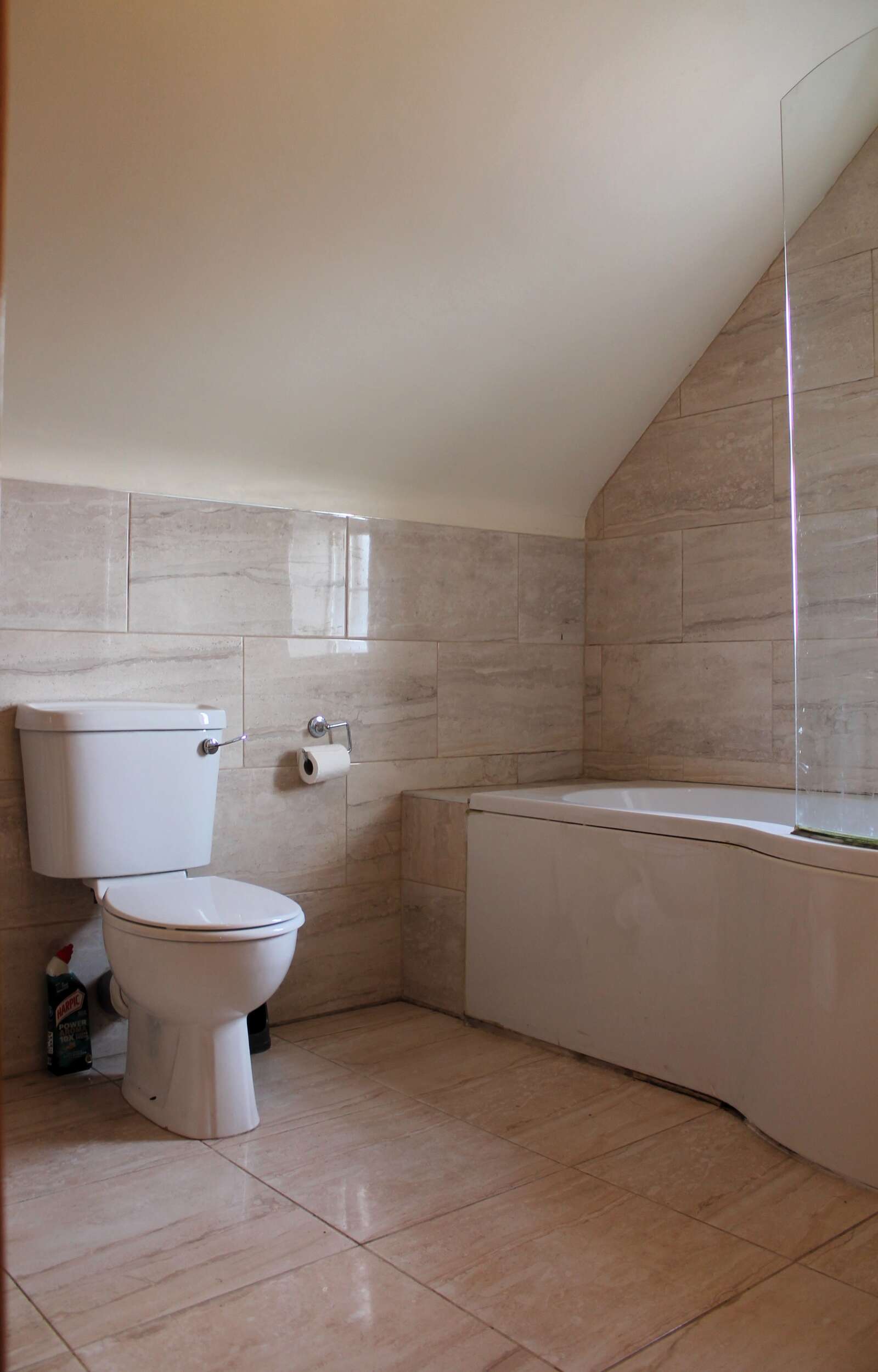 - Upstairs consists of two bedrooms and a family bathroom with a bath.