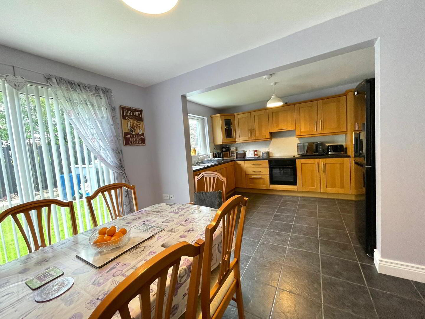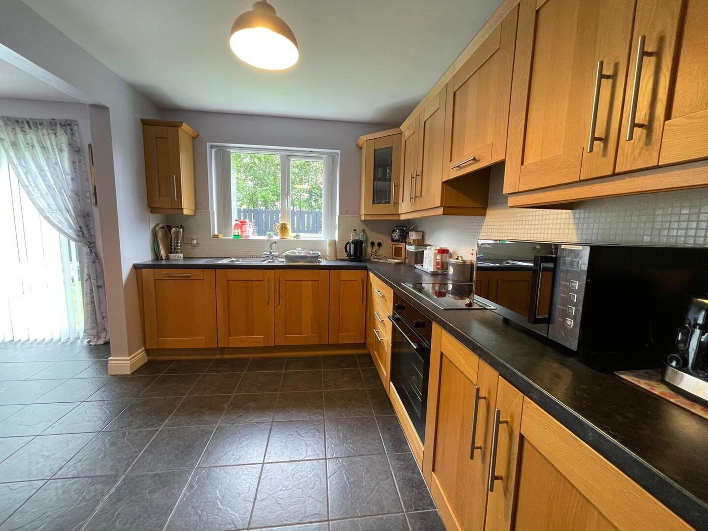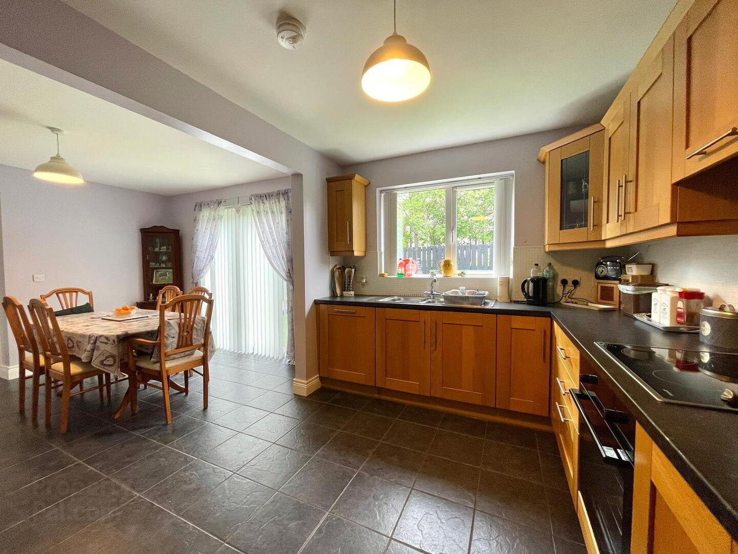 Kitchen / Dining: 19.3 x 12.1. Very spacious room with a tiled floor. Good range of high- and low-level units. Electric cooking facilities – hob, oven & grill, integrated dish washer. TV point. Dining area, patio doors leading to an exceptionally attractive and private rear garden.