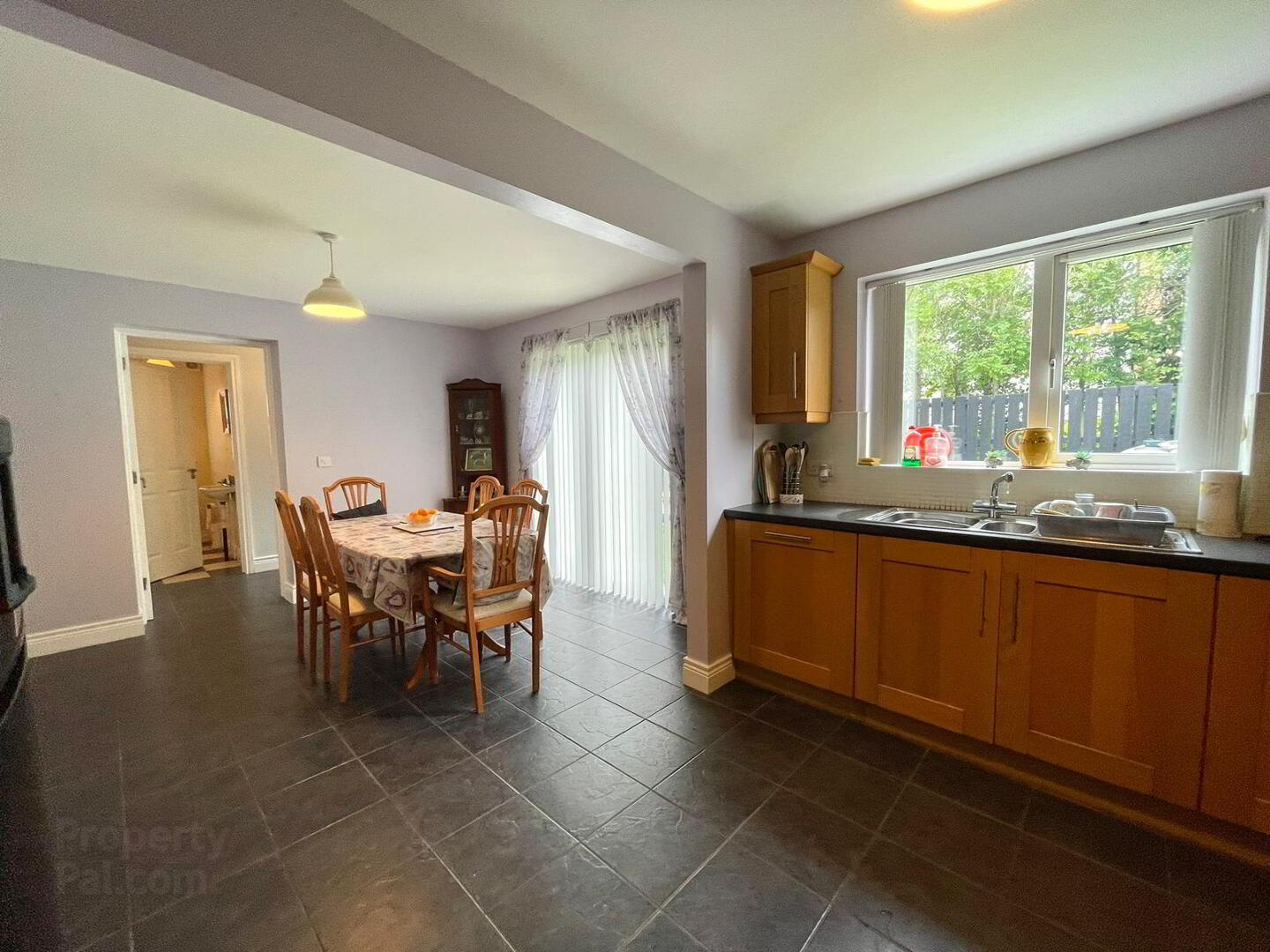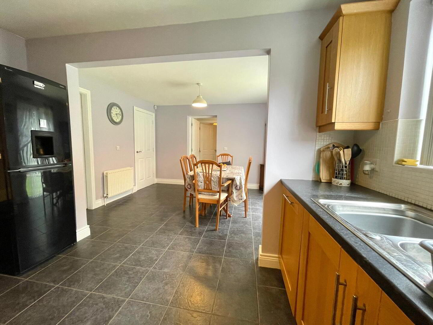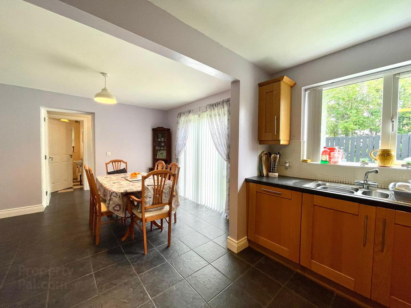 Kitchen / Dining: 19.3 x 12.1. Very spacious room with a tiled floor. Good range of high- and low-level units. Electric cooking facilities – hob, oven & grill, integrated dish washer. TV point. Dining area, patio doors leading to an exceptionally attractive and private rear garden.