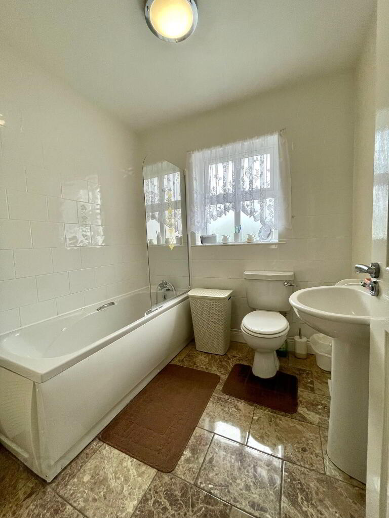 Bathroom: 7.2 x 7ft Bath, WC & WHB. Tiled floor.