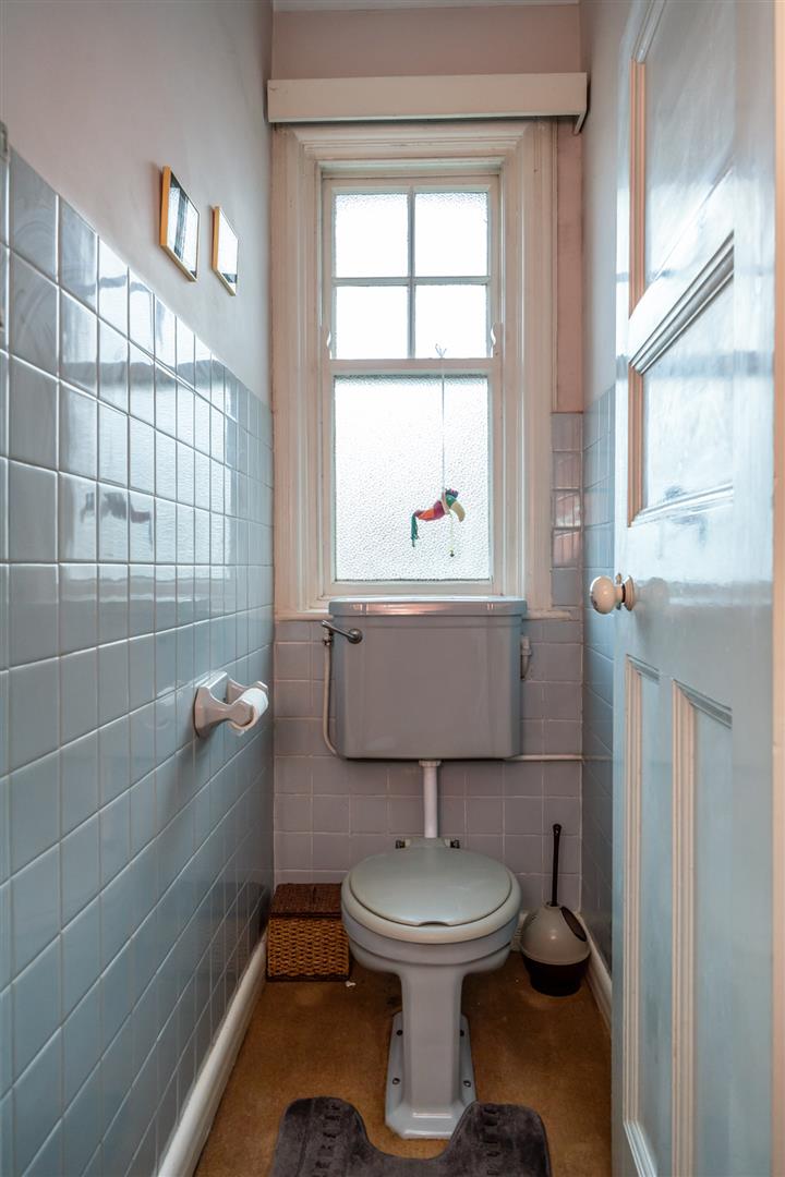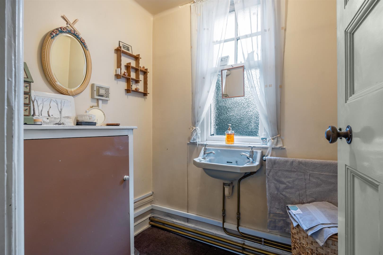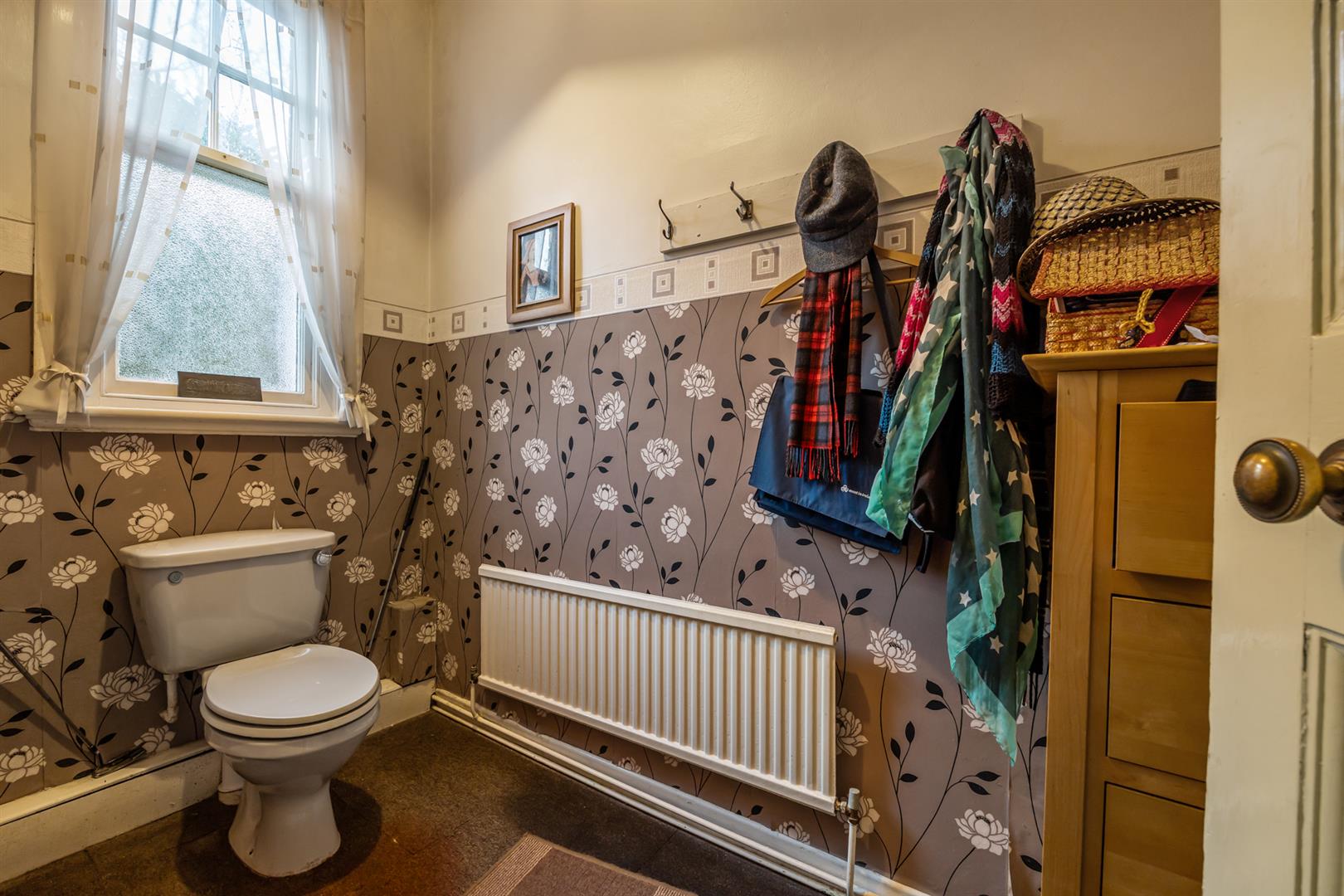 Tiled flooring, feature stained glass window, cloakroom with storage and wash hand basin and seperate WC.