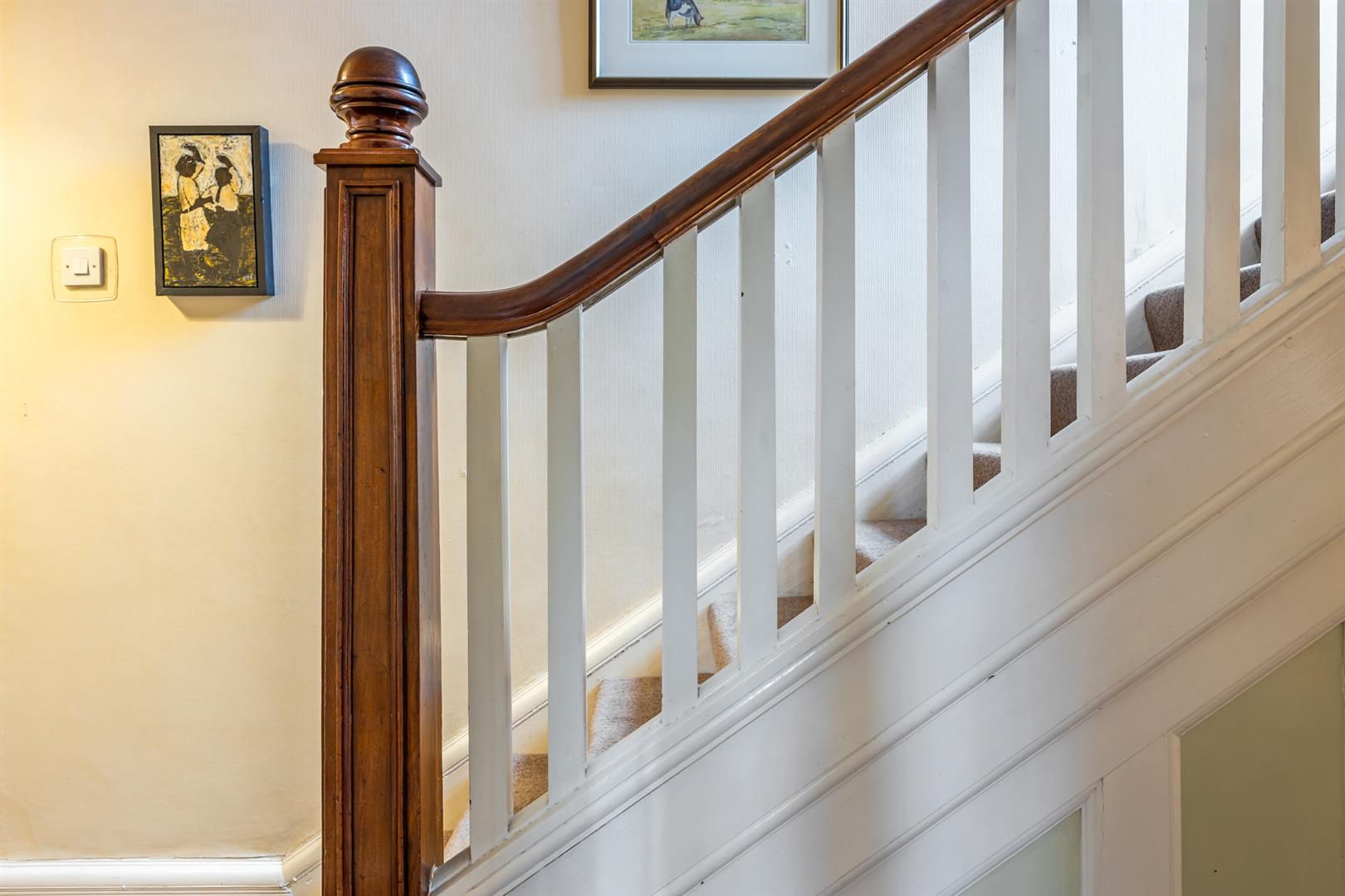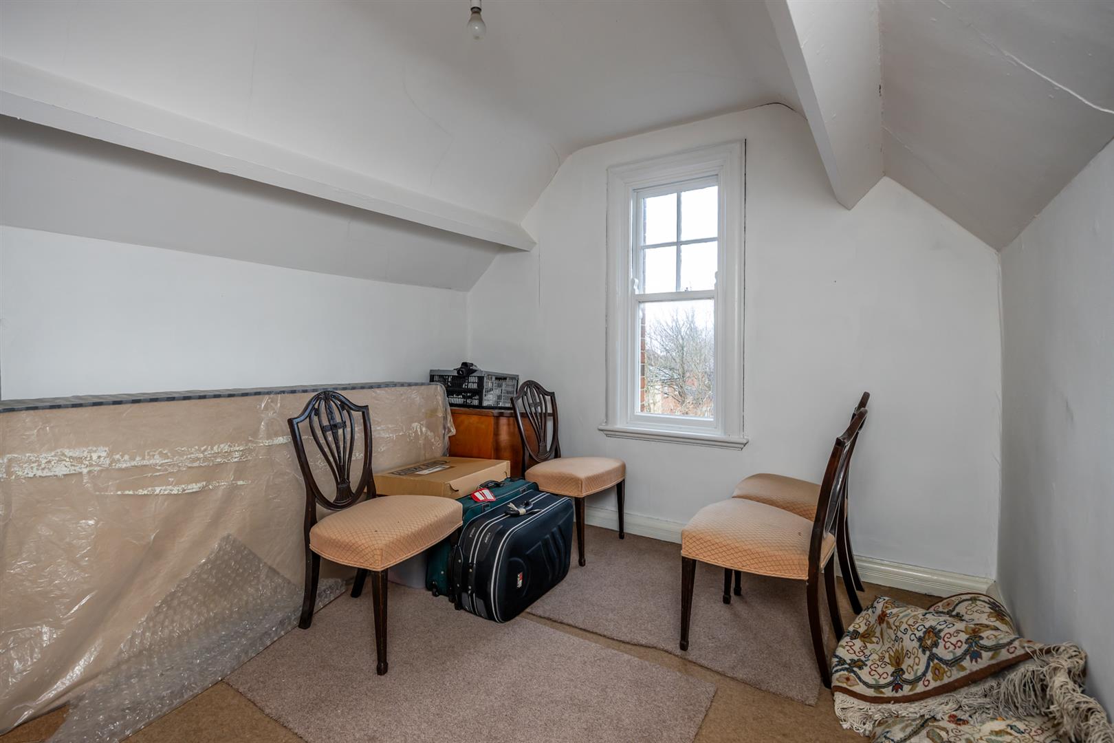 The kitchen and breakfast room offer a range of units, complemented by a rear porch incorporating a shower area, ideal for busy households. Upstairs, the first floor offers five well-proportioned bedrooms, many retaining original fireplaces and decorative cornice ceilings, alongside a family bathroom and separate WC. The second floor provides further versatility with a study, luggage room and additional storage, ideal for home working or hobbies.