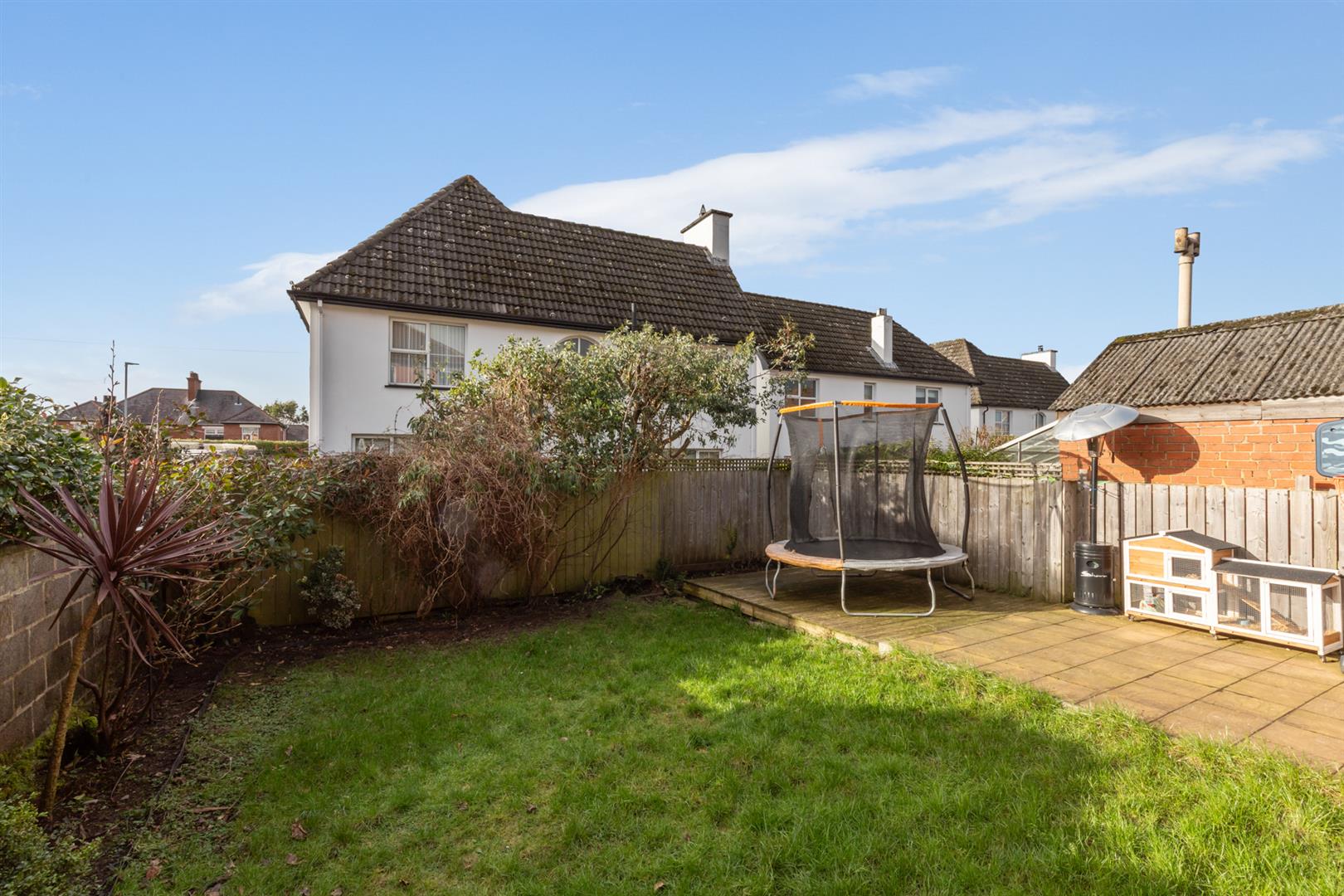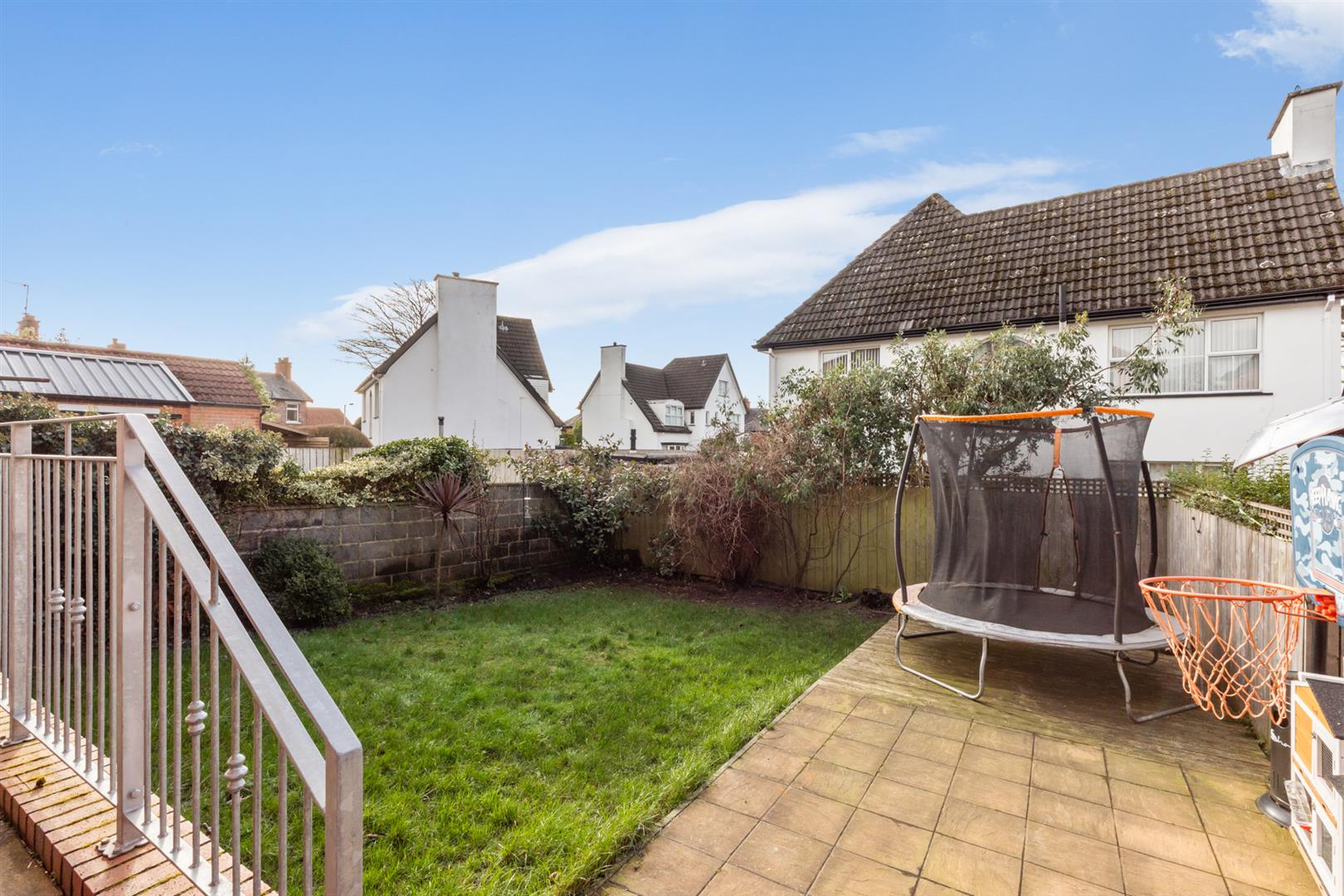Front And Rear Gardens Featuring Lawn, Shrubs, Decking And Trees