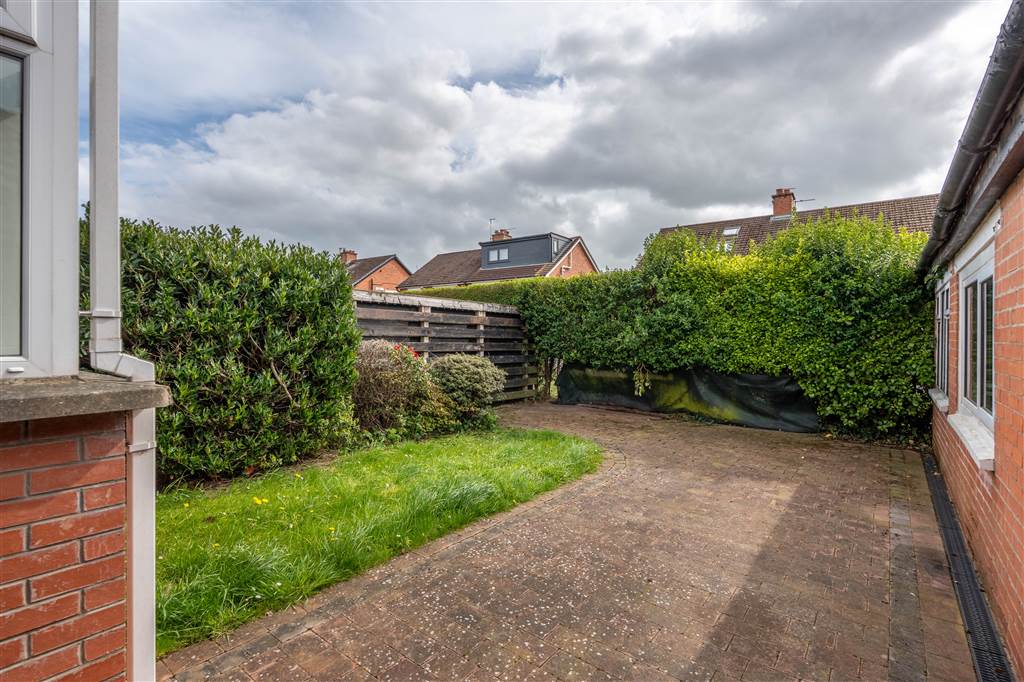 South facing garden to rear laid in lawn and extensive brick pavior, bordered by mature hedging and timber fencing, outside light and tap.