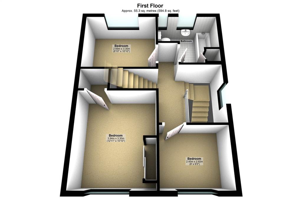 Permanent staircase to second floor, 2 good sized eaves storage cupboards.