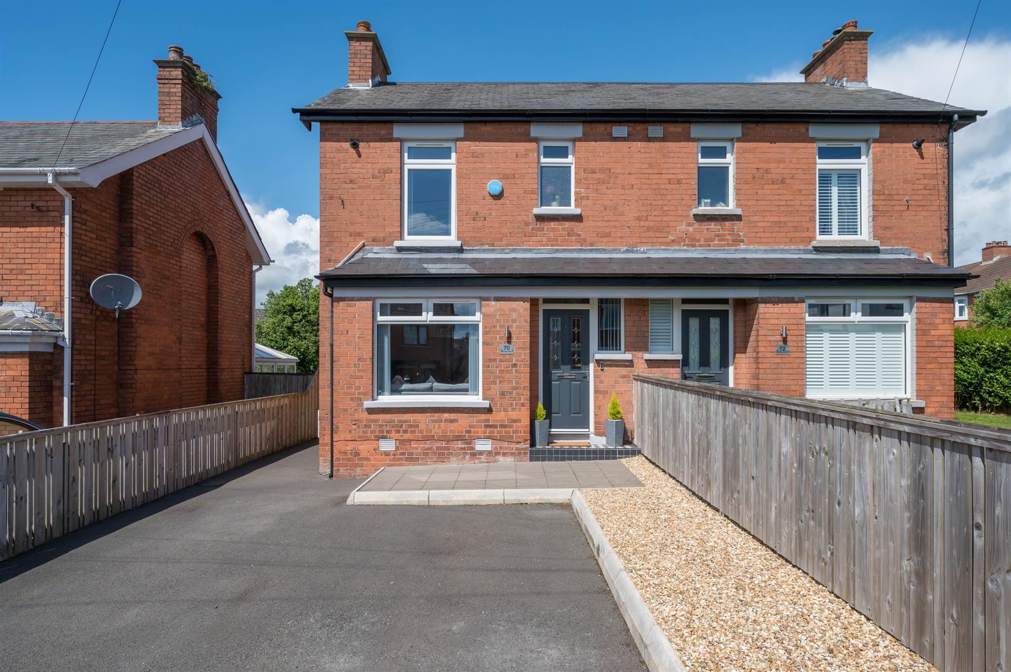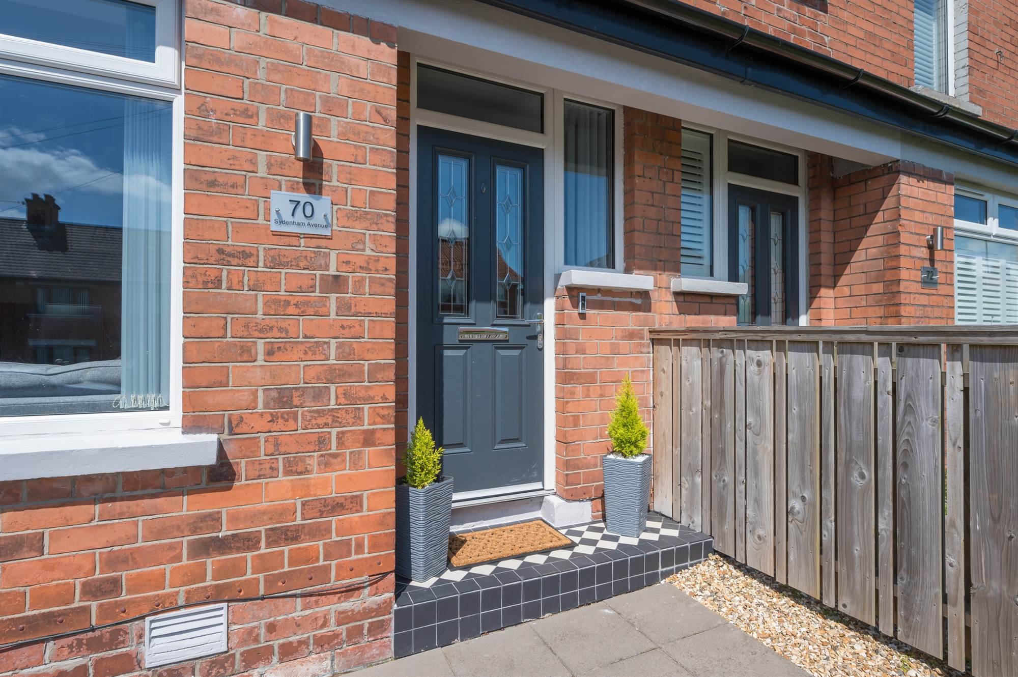 Travelling from the Holywood Road into Belfast, turn left at St Marks Church onto Sydenham Avenue and No. 70 is located on the left hand side just after the turning for Edgcumbe Gardens, before Norwood Avenue.