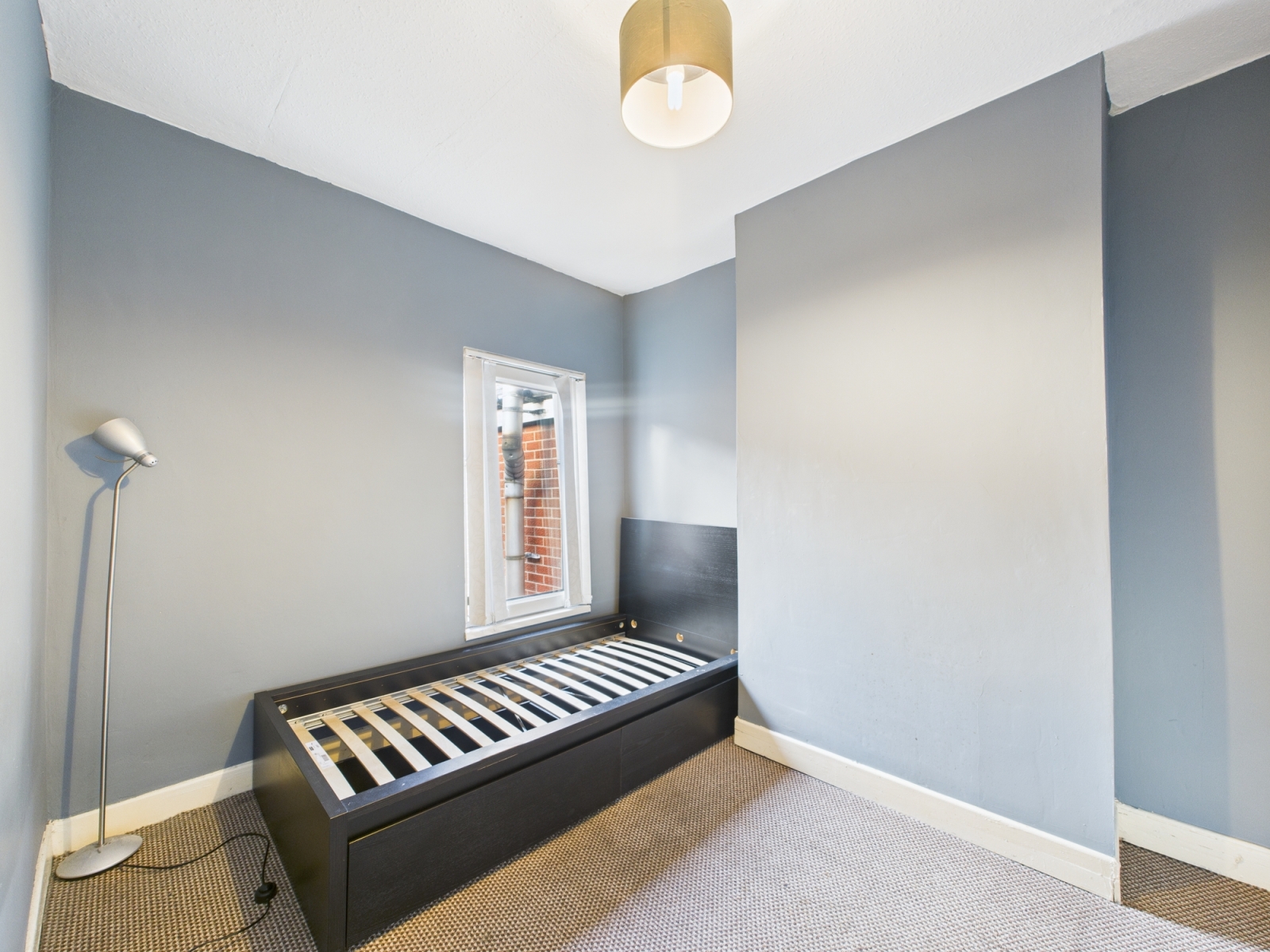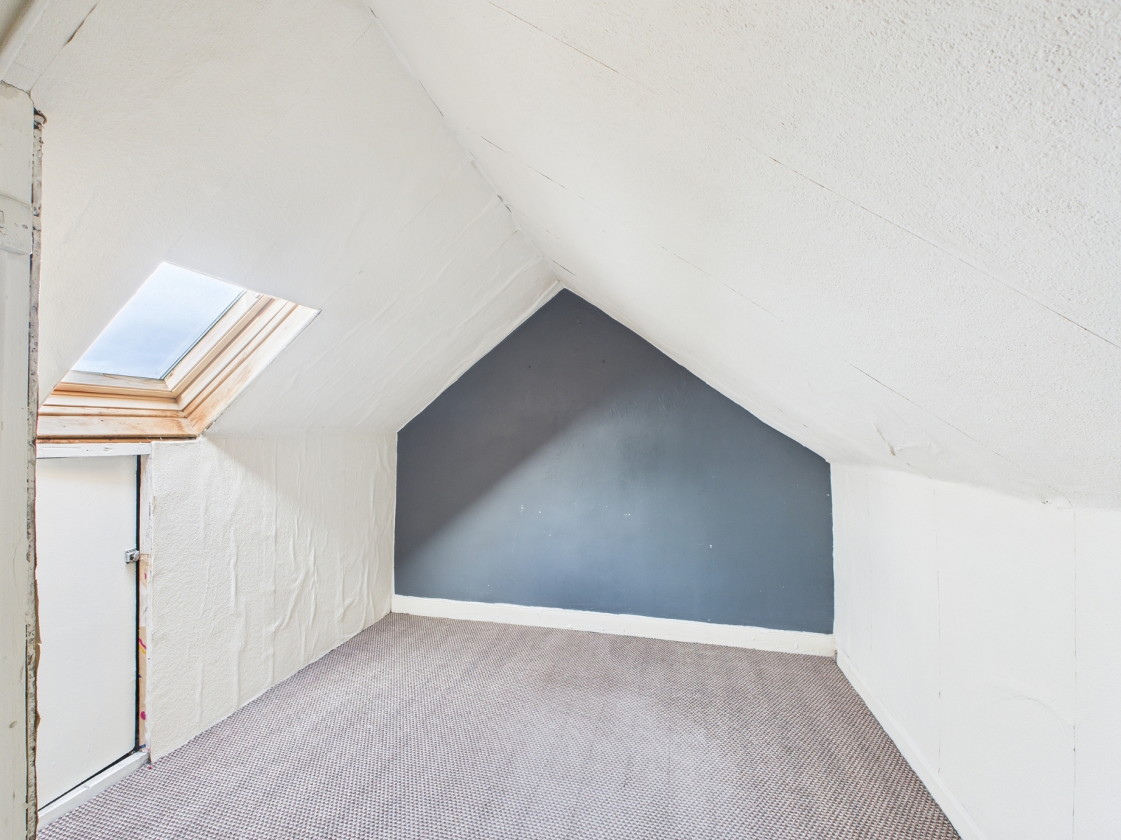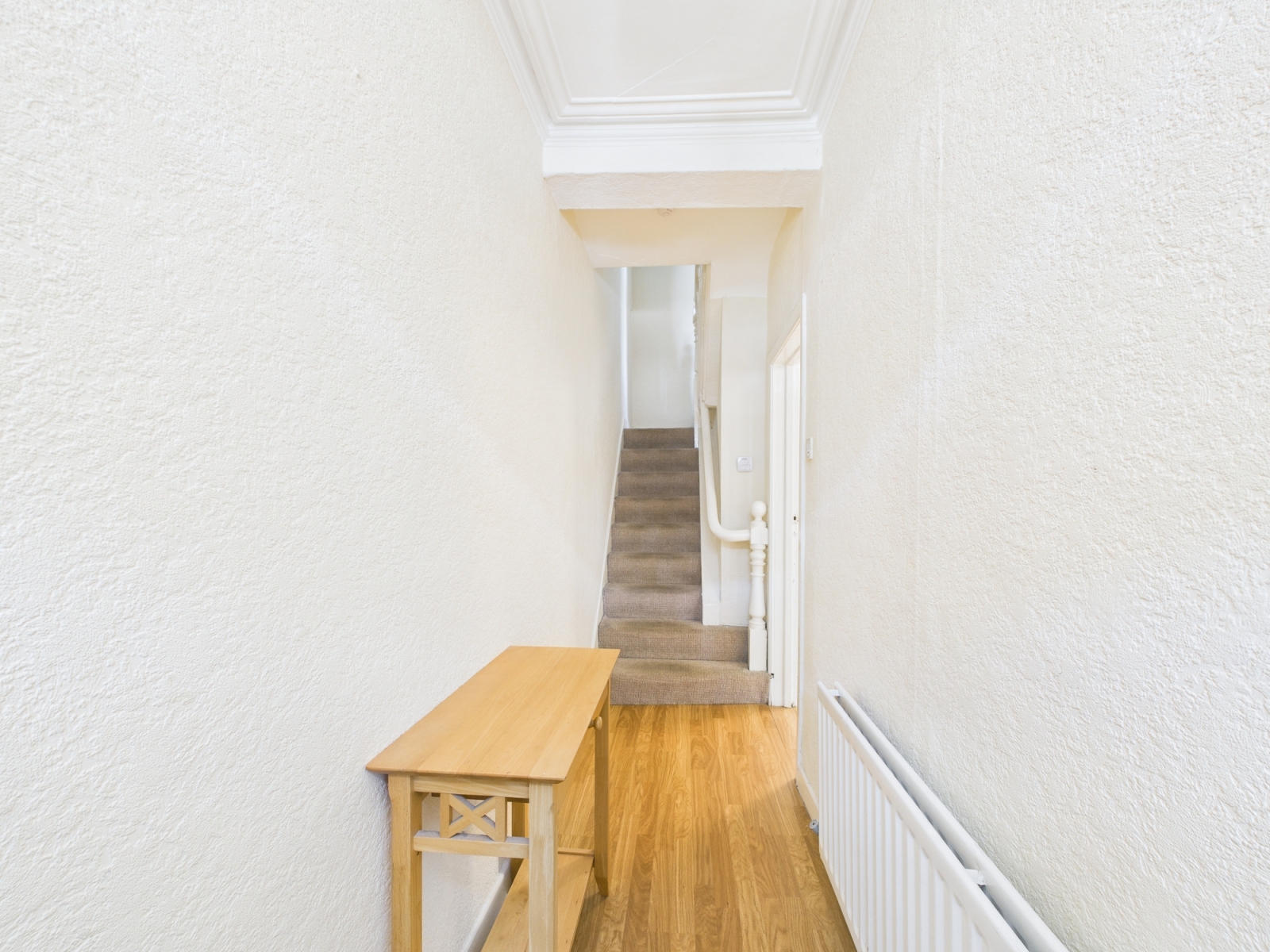 This charming two-bedroom, one-bathroom terraced house in East Belfast is offered furnished, with the bedrooms partly furnished. It features a welcoming living room, a kitchen, and a bathroom with a shower over the bath.