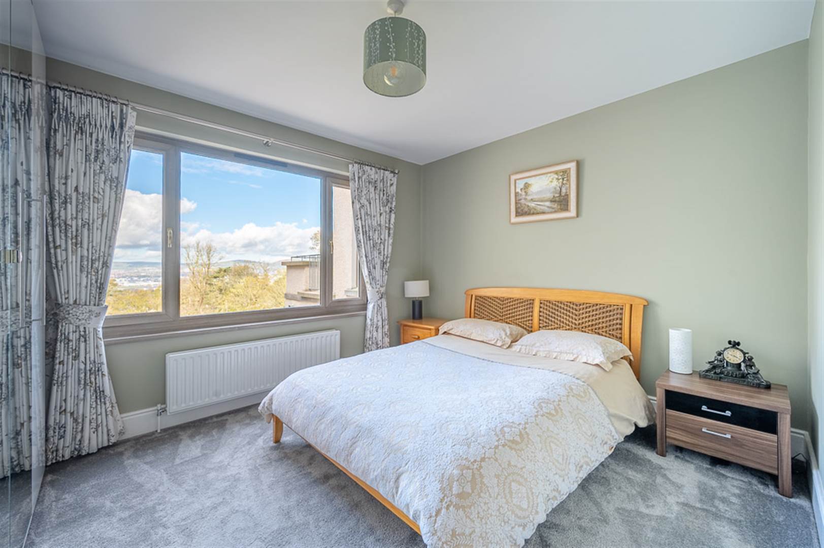 Feature 9"8â ceiling height, impressive high efficiency glass fronted Fondis Ulys fire, recess for logs, display recessed seat with concealed lighting, part dropped ceiling with concealed LED lighting, large marble tiled floors, deep cornicing, low voltage lighting, extensive window on three sides with views over the grounds, Belfast Harbour and Black Mountain, period style radiators, French doors to large balcony, tiled floor, stunning views.