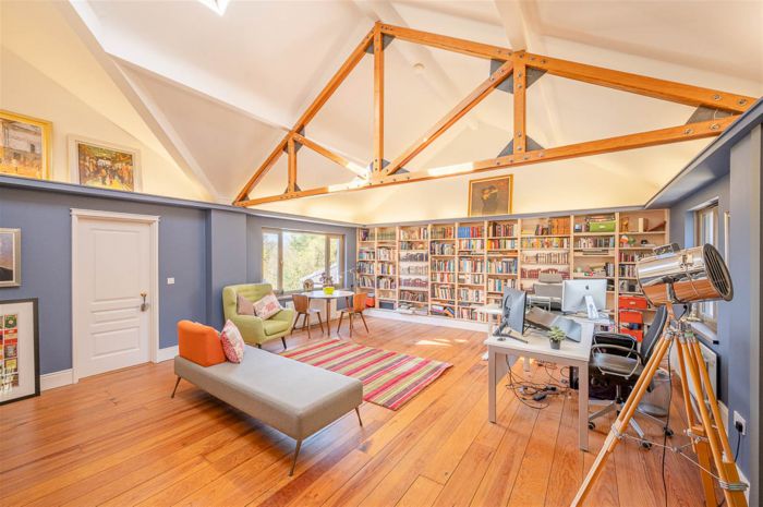 The unique second floor entertaining area extends to over 400 sqft with a vaulted ceiling and feature exposed beam, the space offers a flexibility to use either as an office, studio or a cinema room