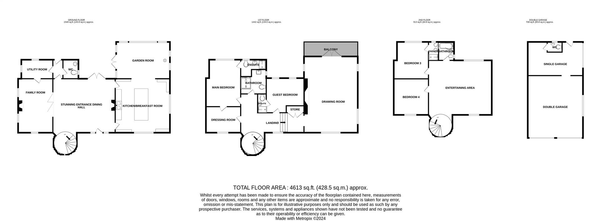 Main bedroom suite incorporating luxury fully fitted dressing room and recently installed ensuite, guest bedroom and bedroom three with luxury ensuite each designed by the renowned "Soaks Bathrooms"