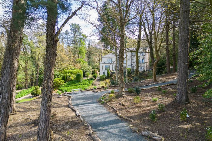 Spectacular gravel path surrounding the boundary, lit by individually designed light bollards all leading you to a large garden