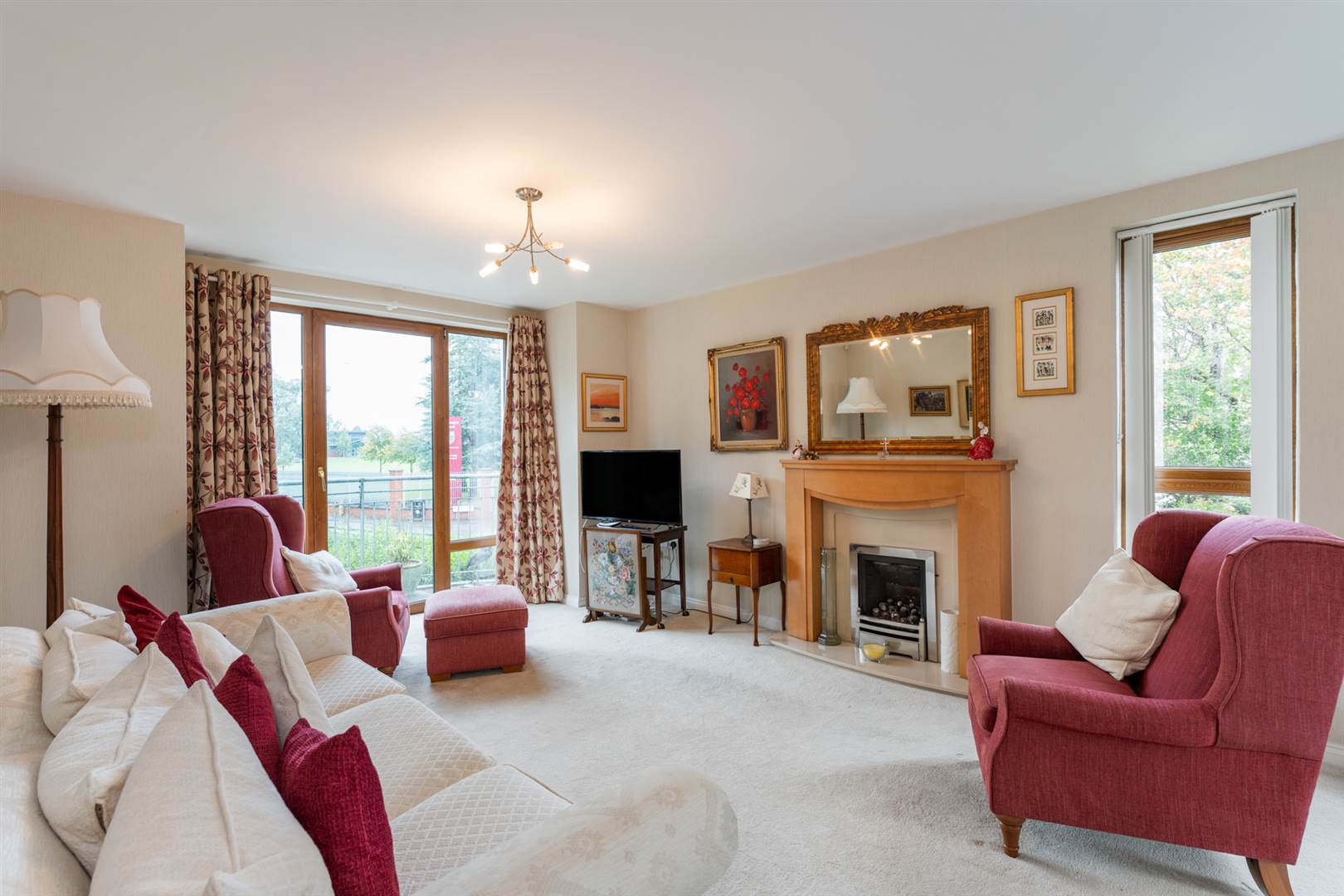 Double glazed door accessing balcony overlooking the Belmont Road. Fireplace with wooden surround, stone inset and hearth, gas fire. Feature south facing corner window.