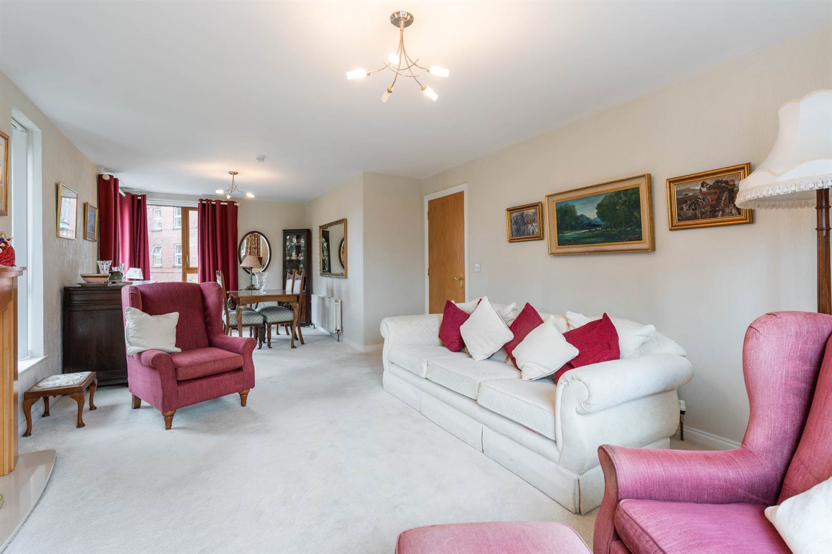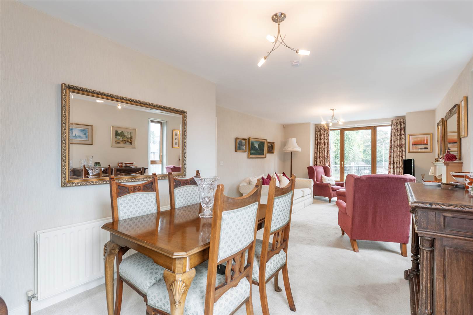 Living room open to dining room, access to a private balcony and views towards the Belmont Road