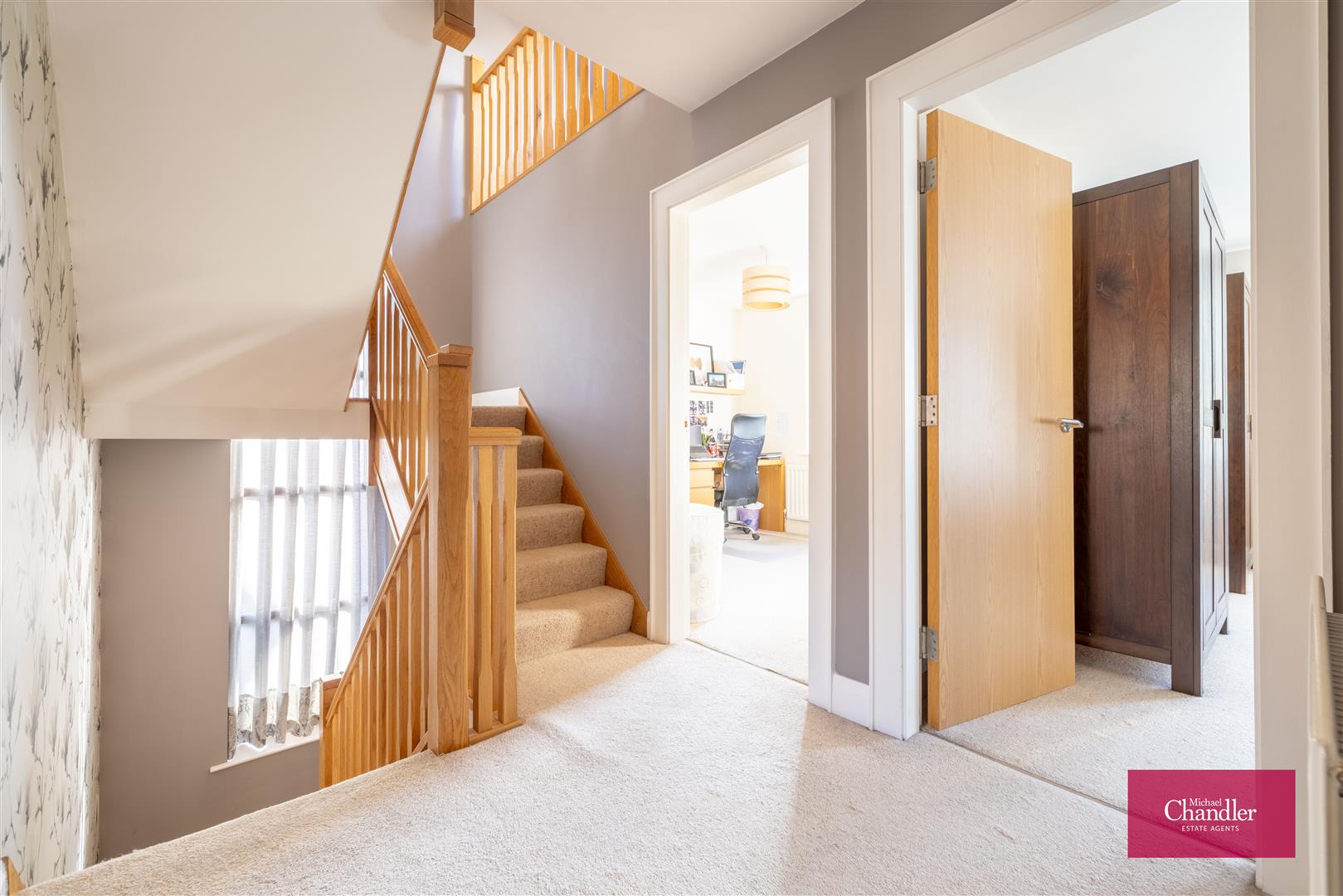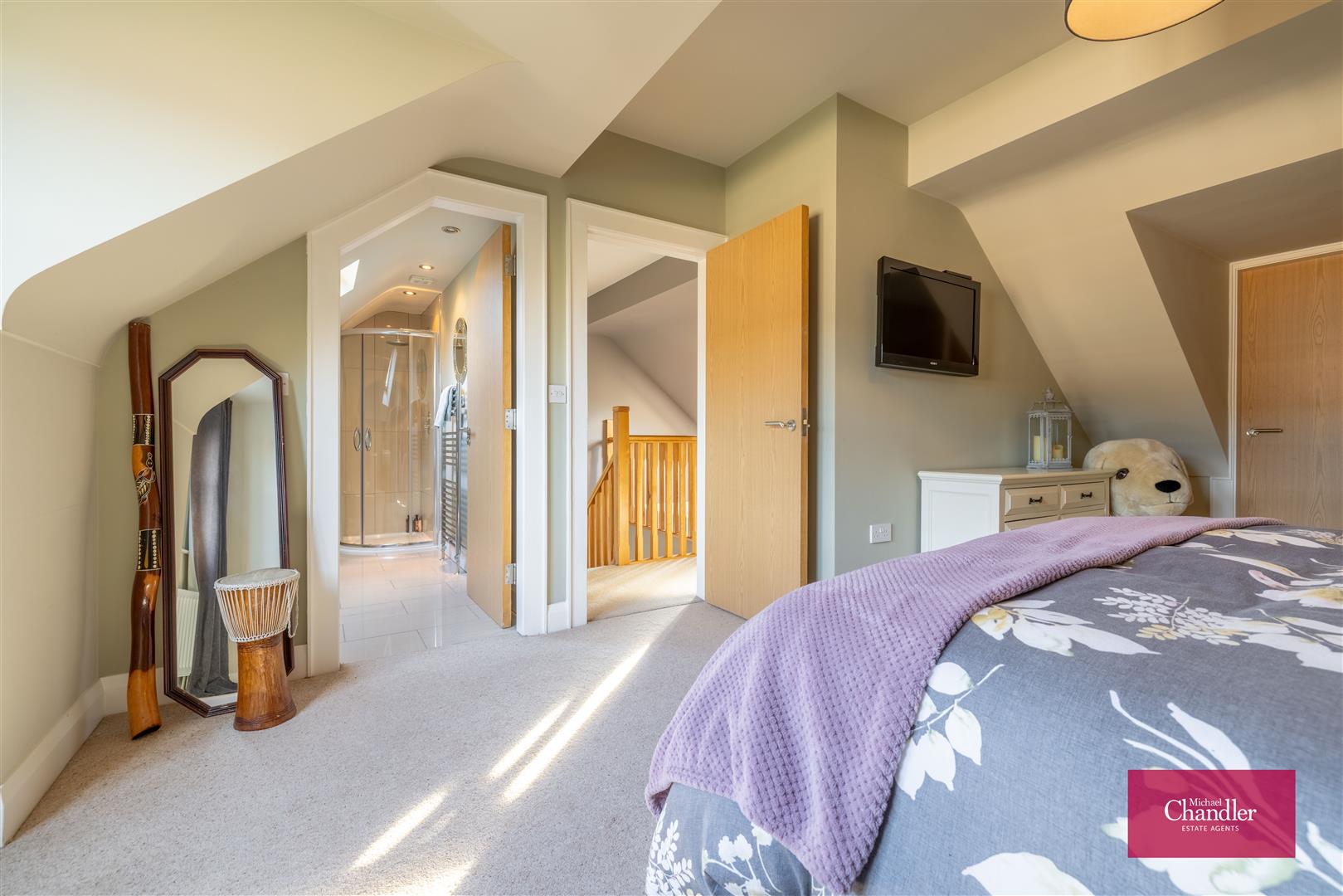 On the first floor, you will find four double bedrooms, one of which includes a modern ensuite shower room, alongside a stylish family bathroom with a contemporary white suite. The second floor benefits from a luxurious master suite, complete with ample storage and a lavish ensuite shower room, providing a private retreat for relaxation, or an ideal space for teenagers wanting their own space.