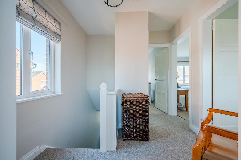 With access hatch to roof space, linen press with radiator and built-in shelving and storage with Valiant gas fired boiler.