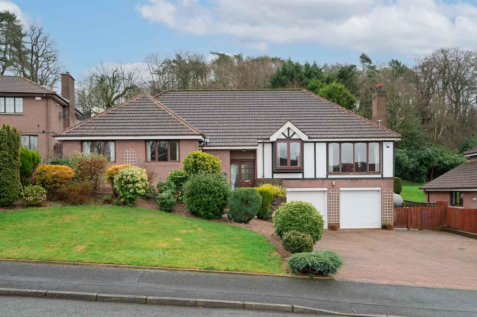 Nestled within the prestigious and mature surroundings of Glenmachan Drive, this impressive three-bedroom (formerly four-bedroom) detached home offers generous accommodation, beautifully maintained gardens and superb privacy in one of East Belfast´s most sought-after residential locations. Set on an elevated site, the property enjoys excellent kerb appeal with an attractive brick façade, feature gable detailing, and a spacious driveway leading to an integral double garage.