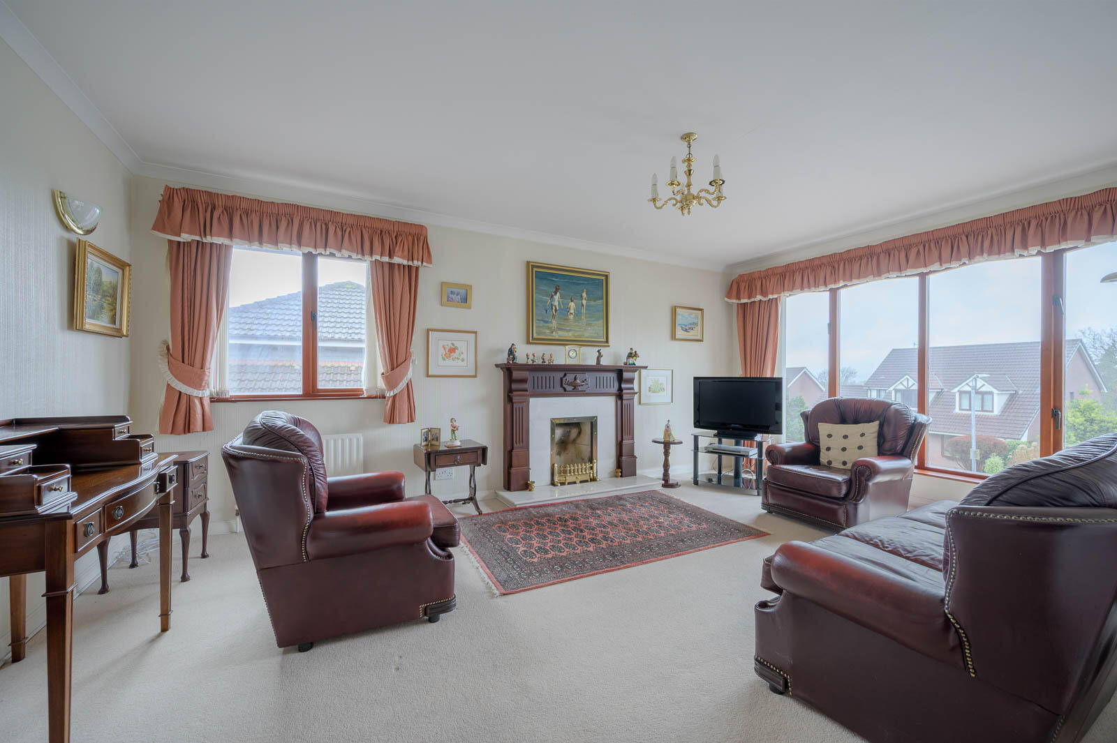 Elegant Lounge with Feature Fireplace and Dual-Aspect Windows, Creating a Warm and Comfortable Room with Excellent Natural Light.