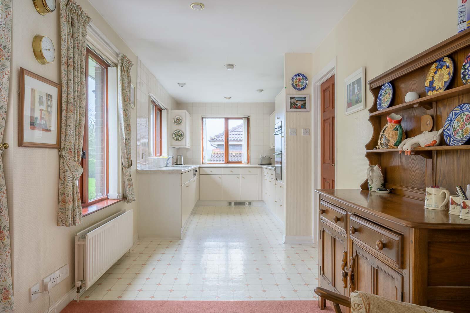 Practical Kitchen with Extensive Storage, Offering Functionality and Scope for Updating or Redesigning to Suit Modern Tastes.