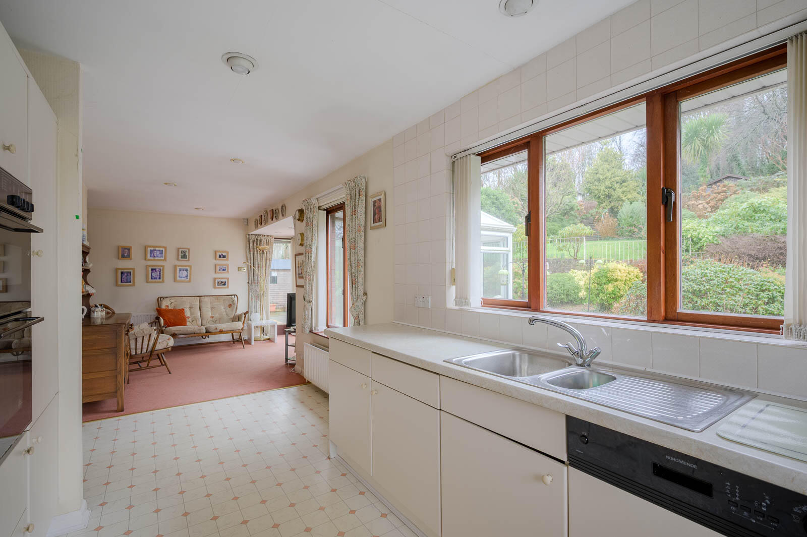 Open-Plan Kitchen/Living/Dining Area, Offering a Relaxed Everyday Space with Garden Views and Strong Potential for Modernisation.