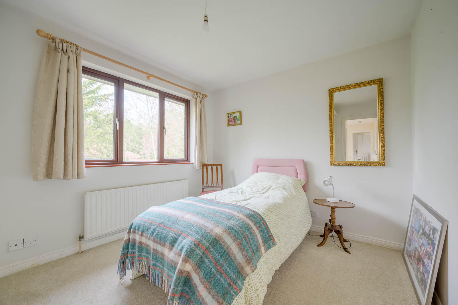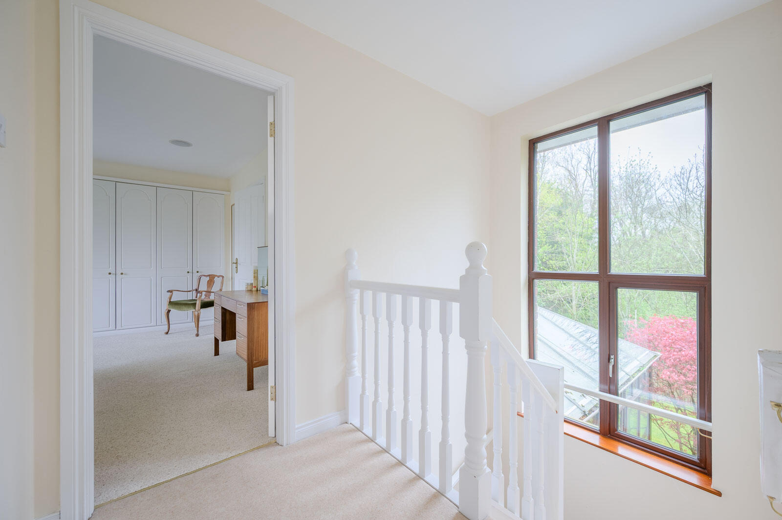 Picture window overlooking rear garden, landing with access to roofspace and linen closet with pressurised water system.