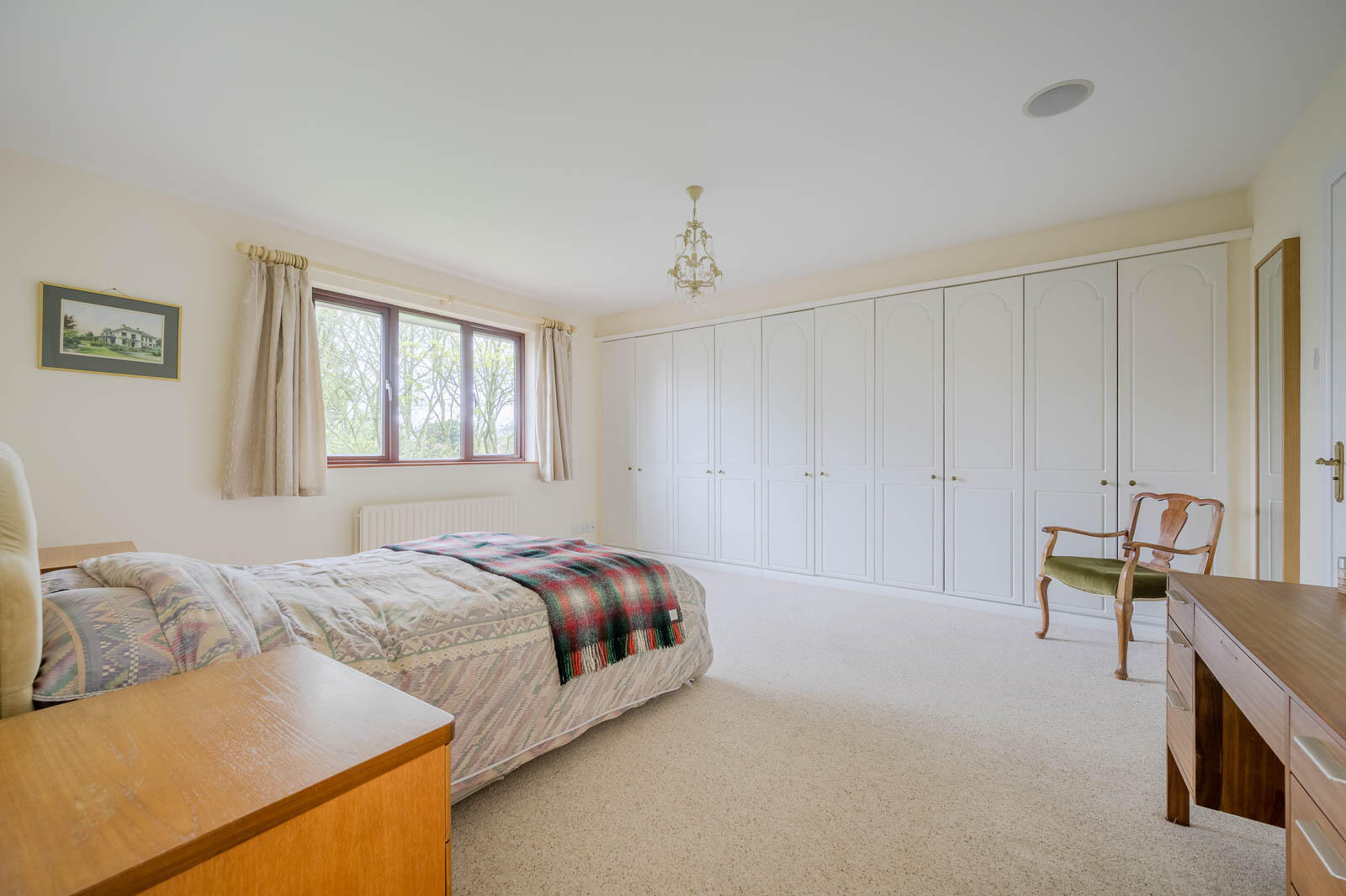With wall-to-wall range of built-in wardrobes.