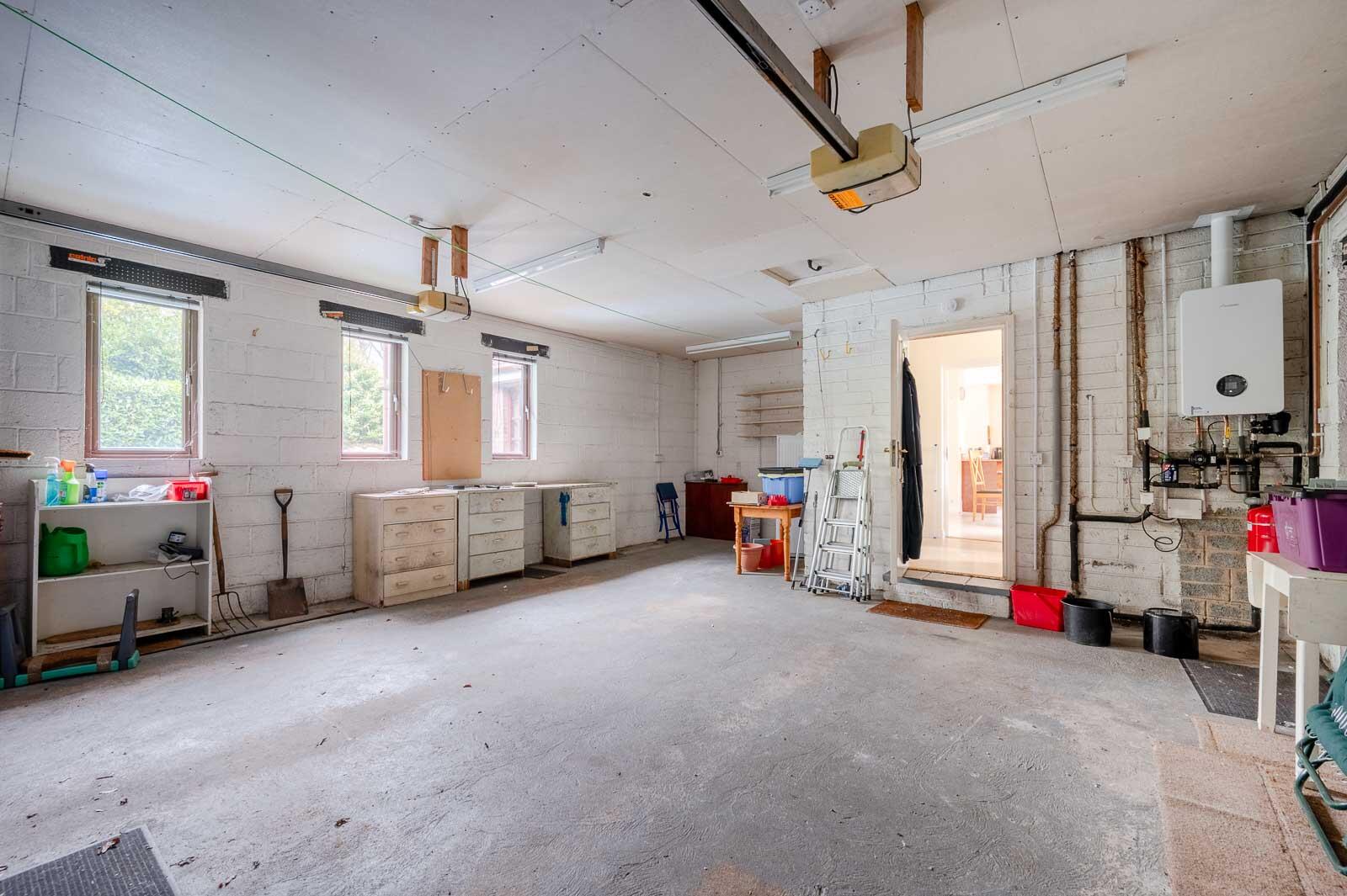 With twin up and over doors, light and power, newly installed Worcester Bosch gas boiler.