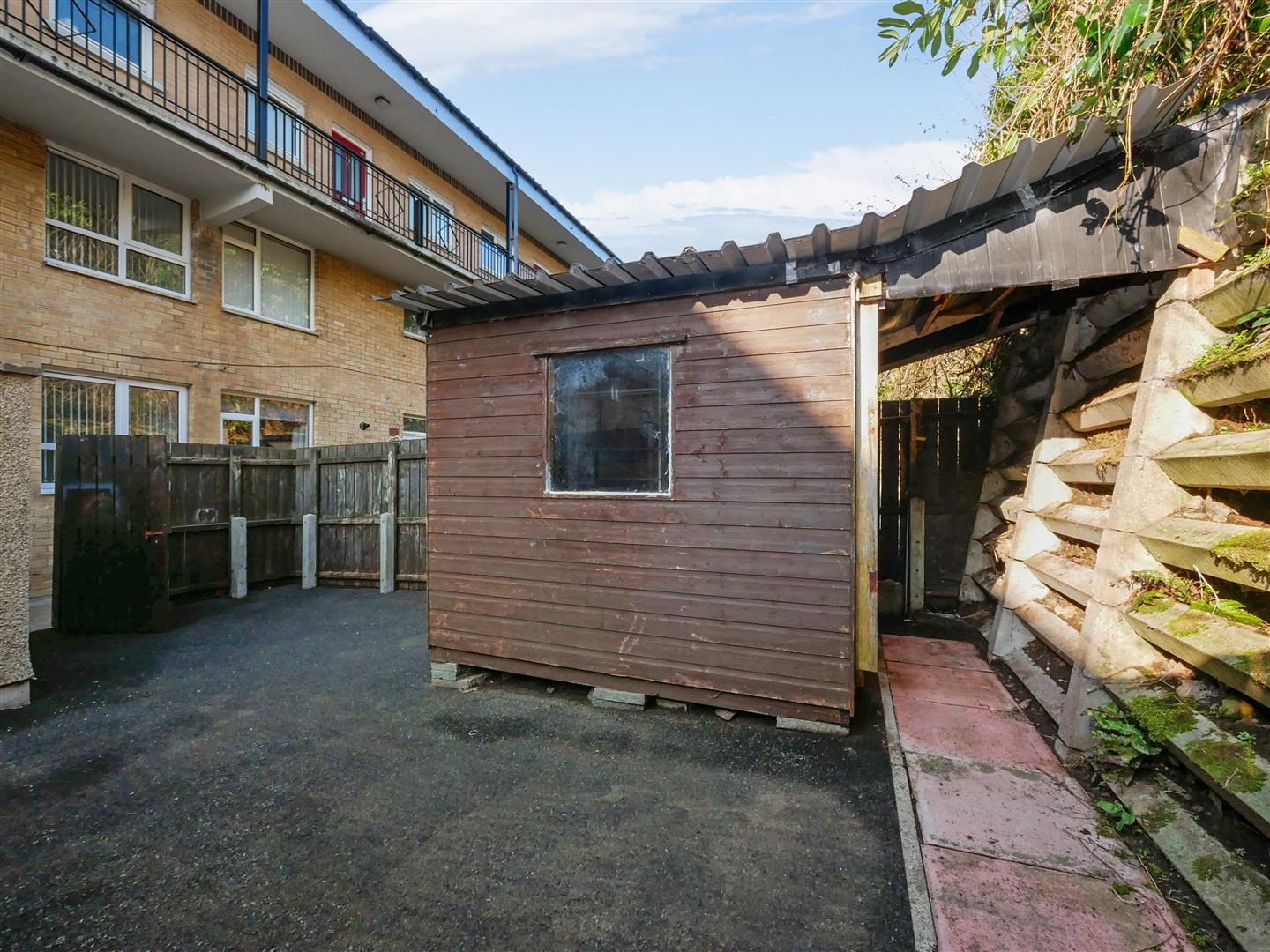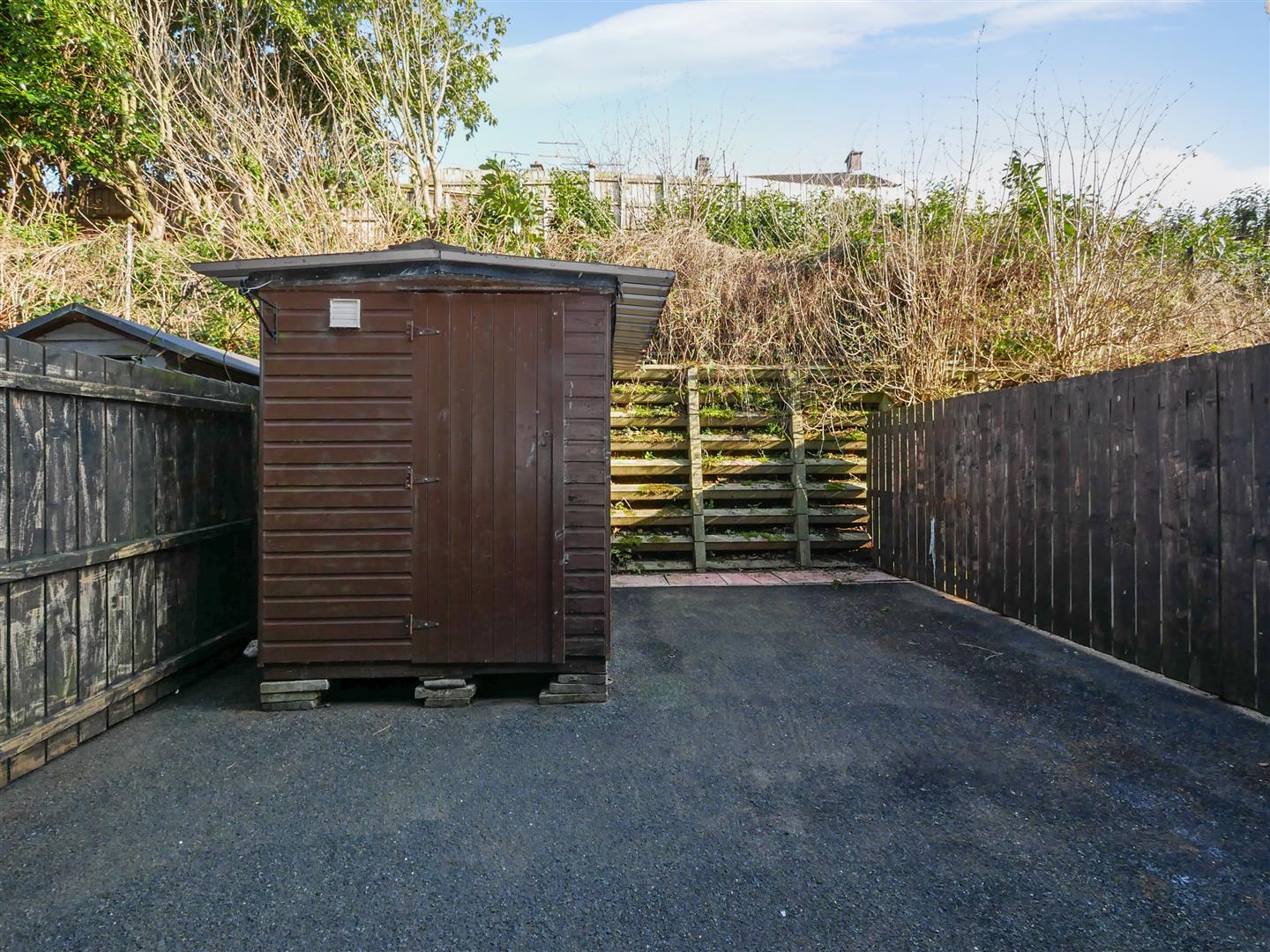 Low maintenance garden space to the rear, Garden shed.