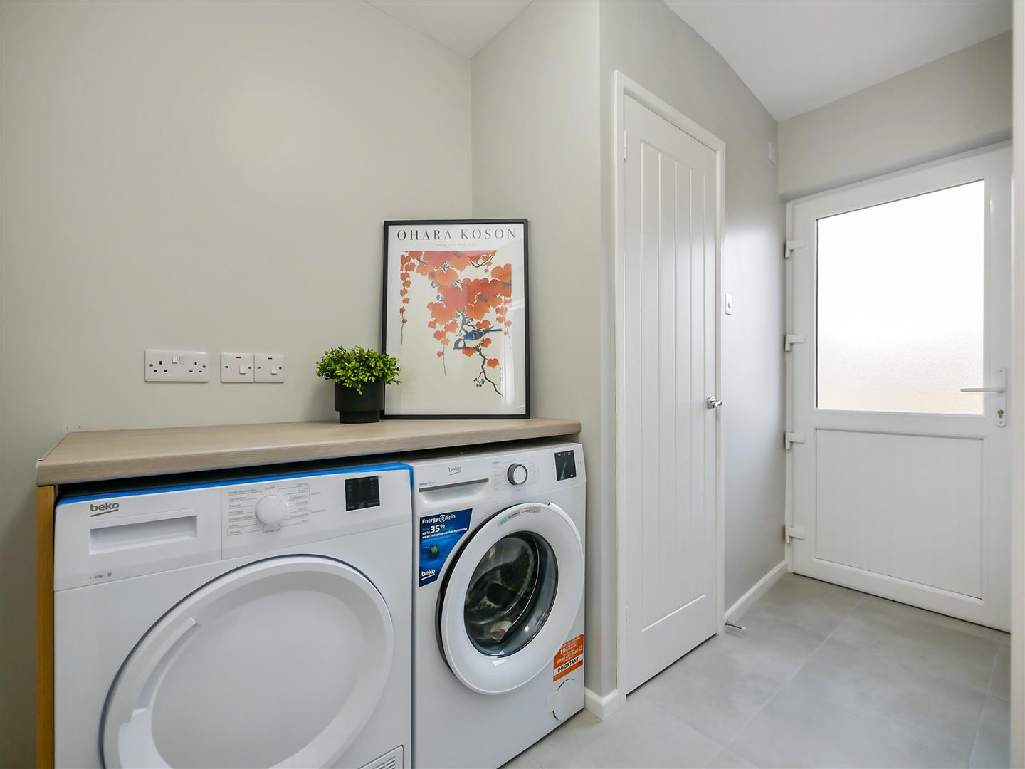 Utility area plumbed for washing machine. Glazed upvc door opens onto enclosed rear garden. Tiled flooring.