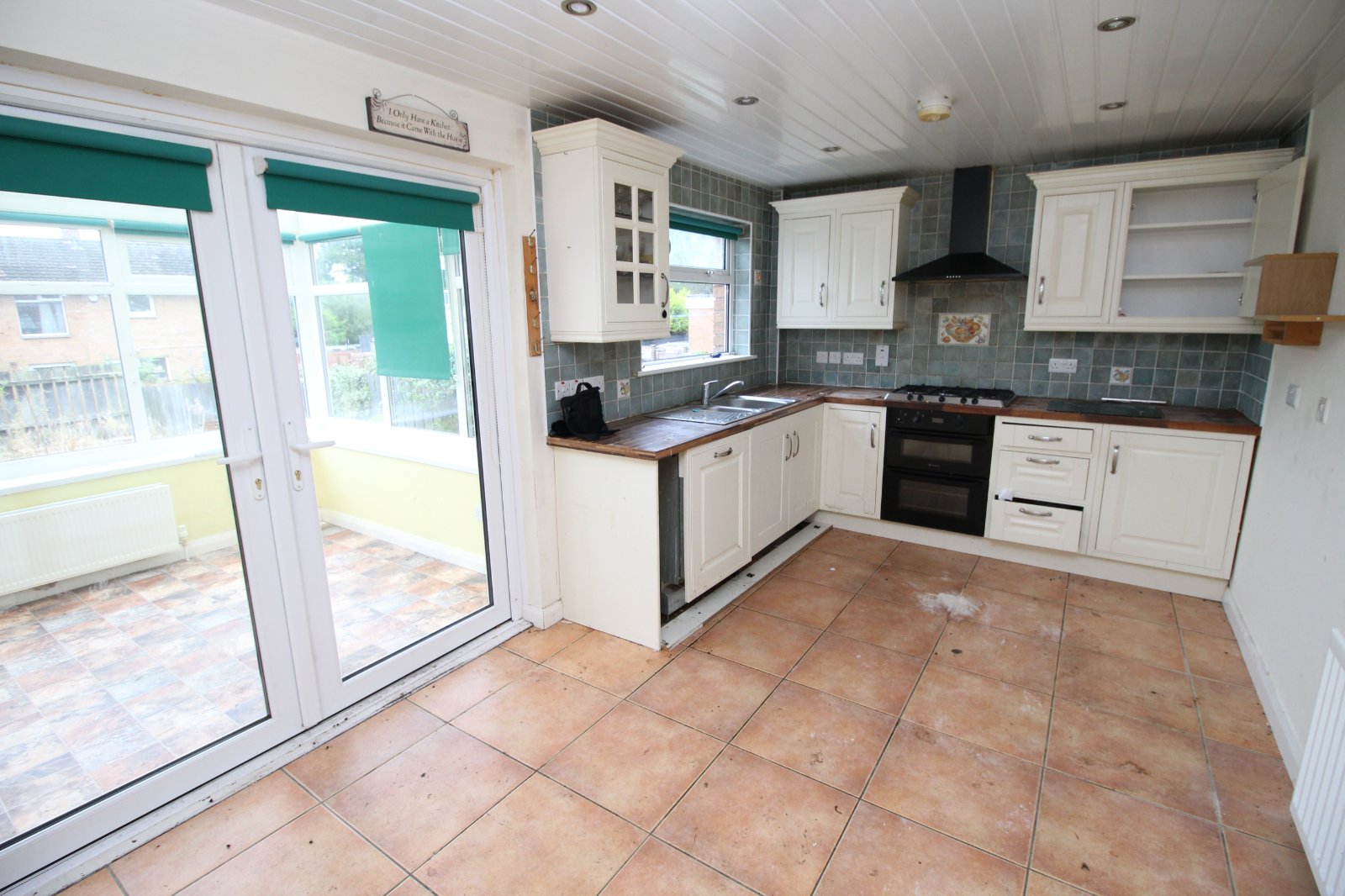 The kitchen has a good range of units, 1.5 drainer with mixer tap, integrated four ring gas hob and oven, extractor, and dishwasher. There are double doors leading to the conservatory.