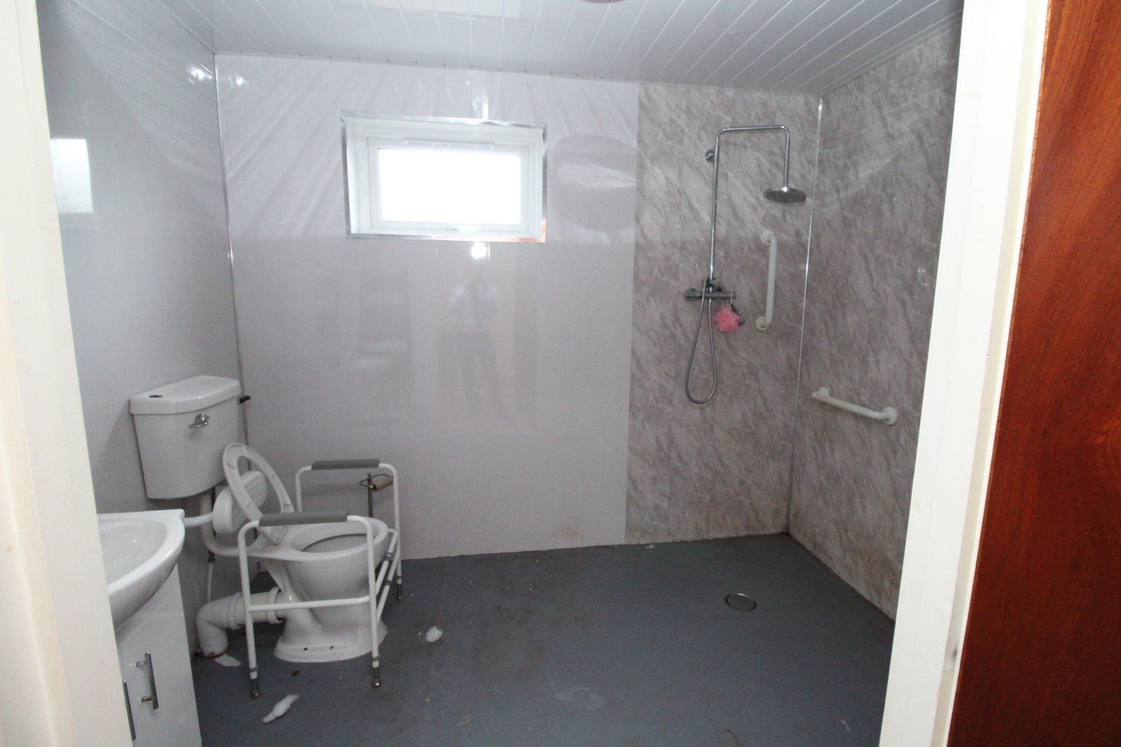 A spacious room previously used as a ground floor bedroom with a large ensuite wet room.