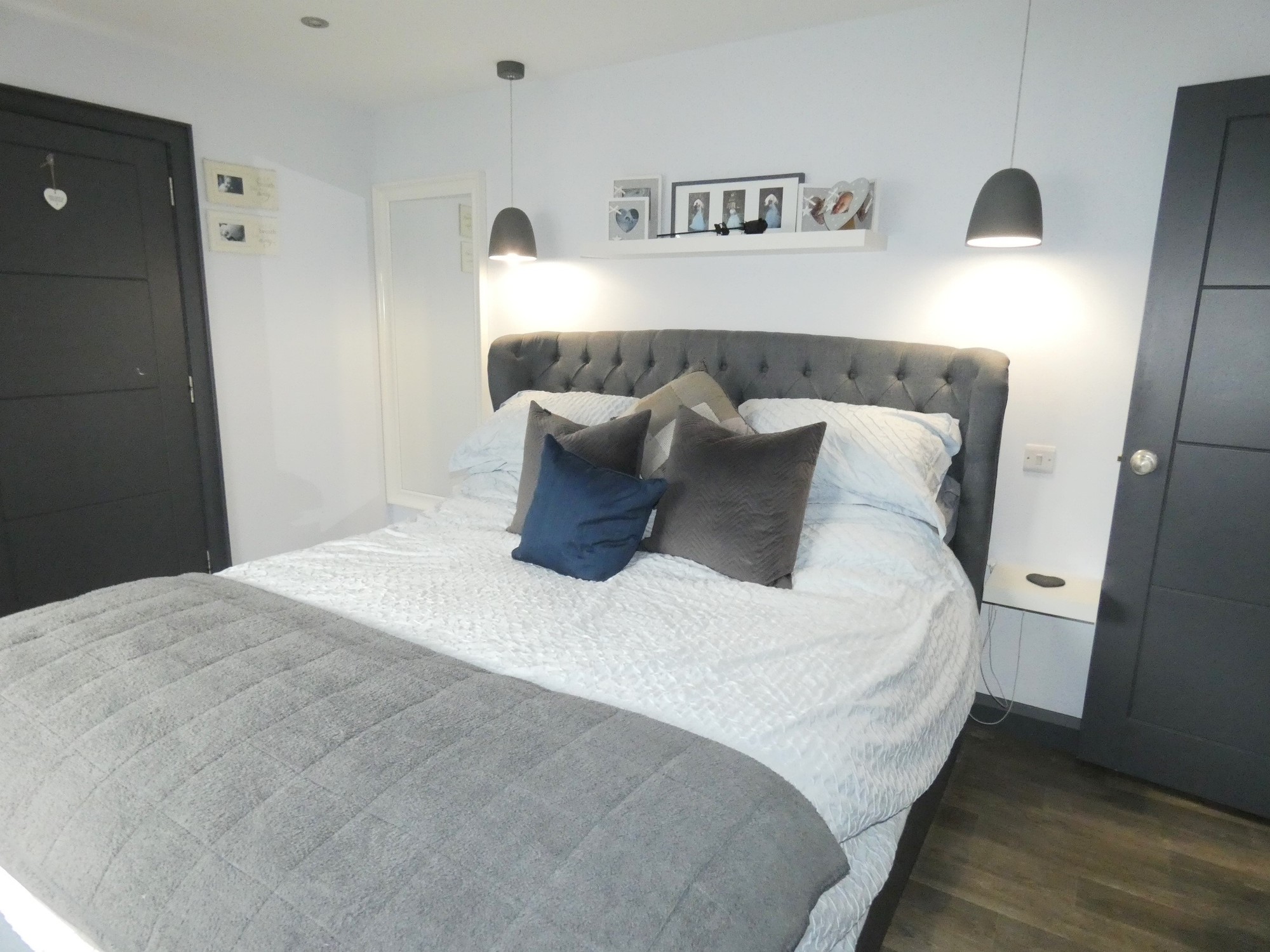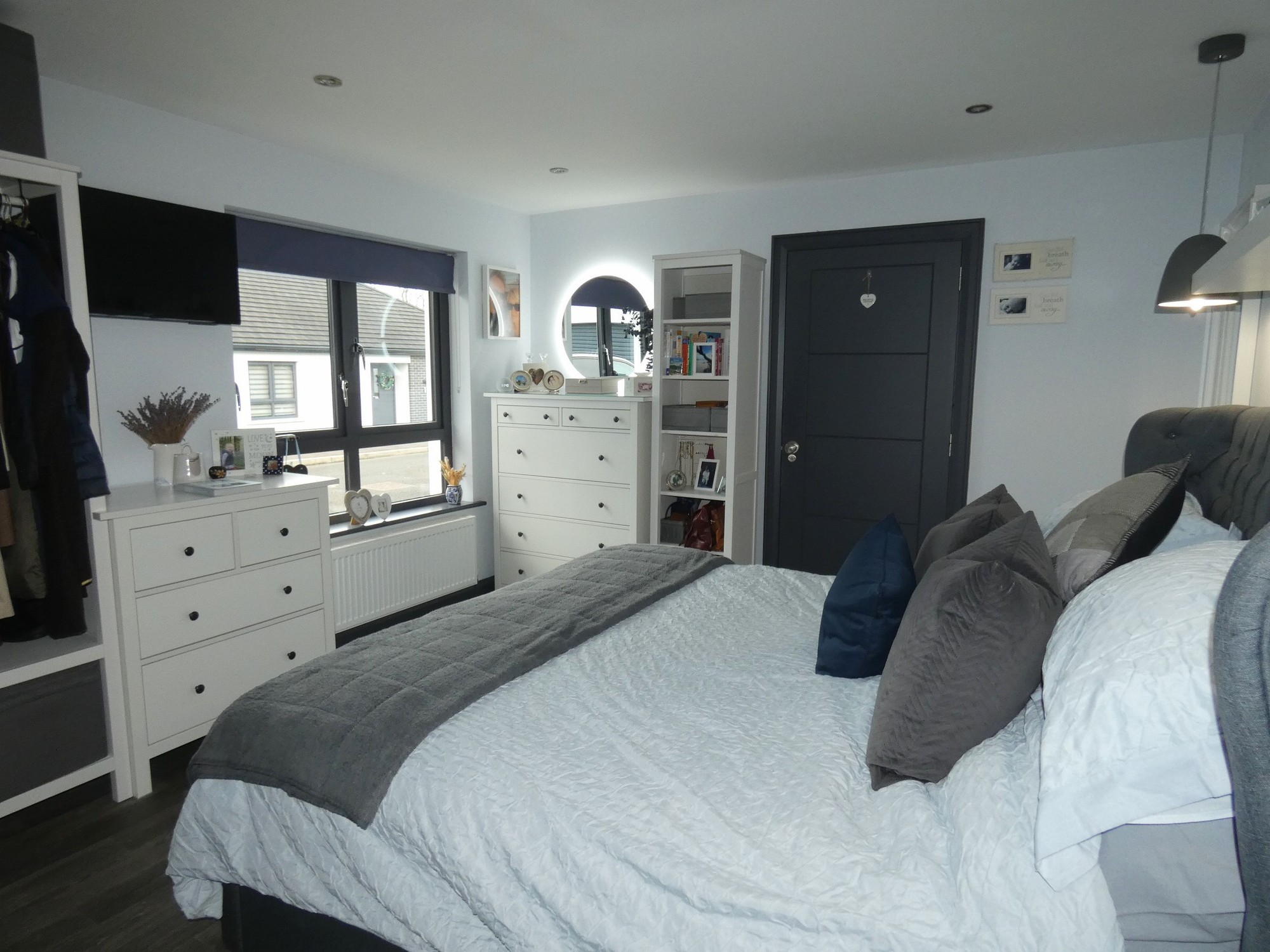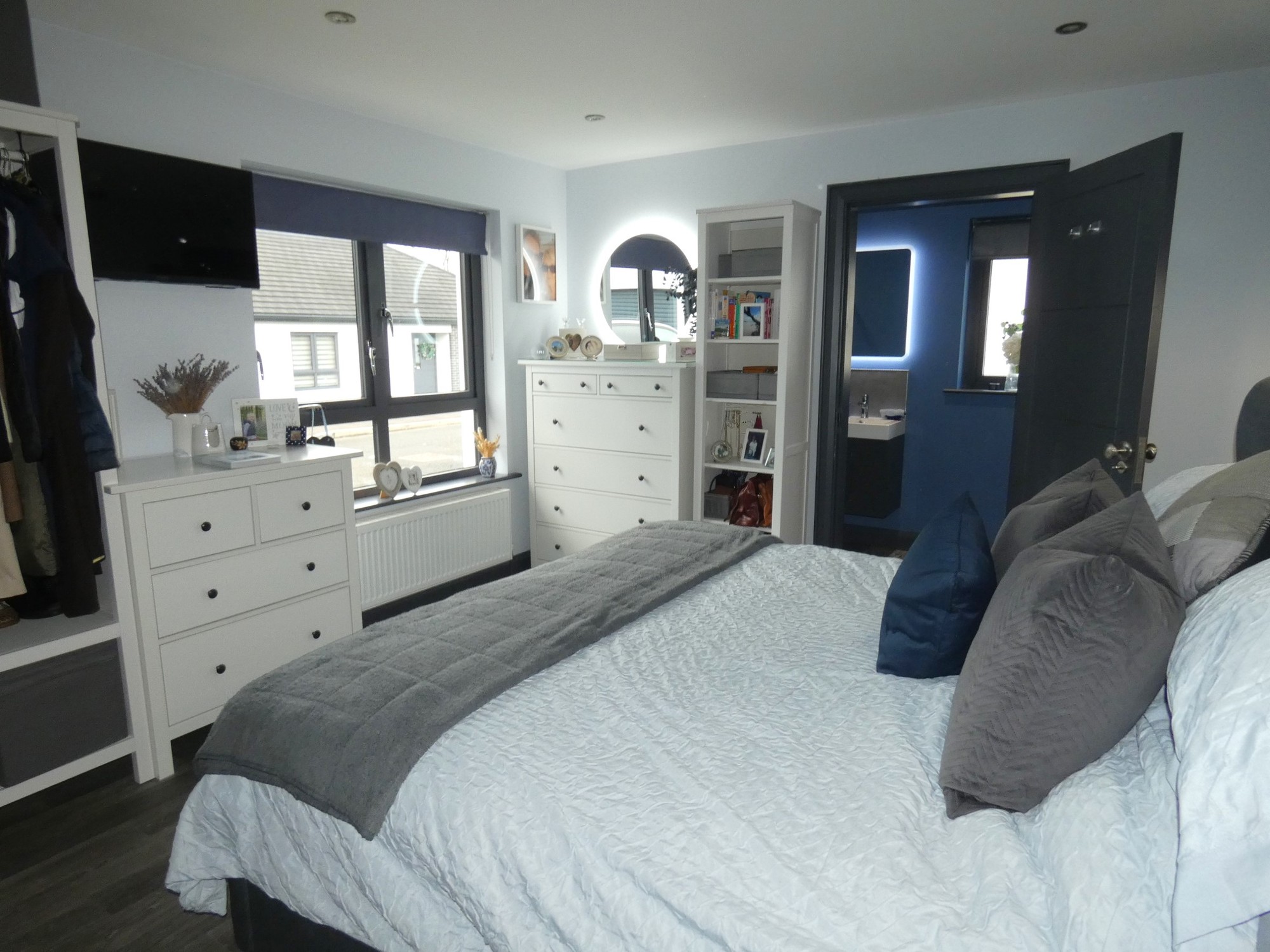 With ceiling downlights, double sockets (suitable for double bed) and light switches, T.V. point, Ensuite with thermostatic shower, tiled cubicle, w.c, wash hand basin, storage cupboards below wash hand basin, touch control led mirror, heated towel rail, tiled floor, ceiling downlights, extractor fan, additional storage cupboards.