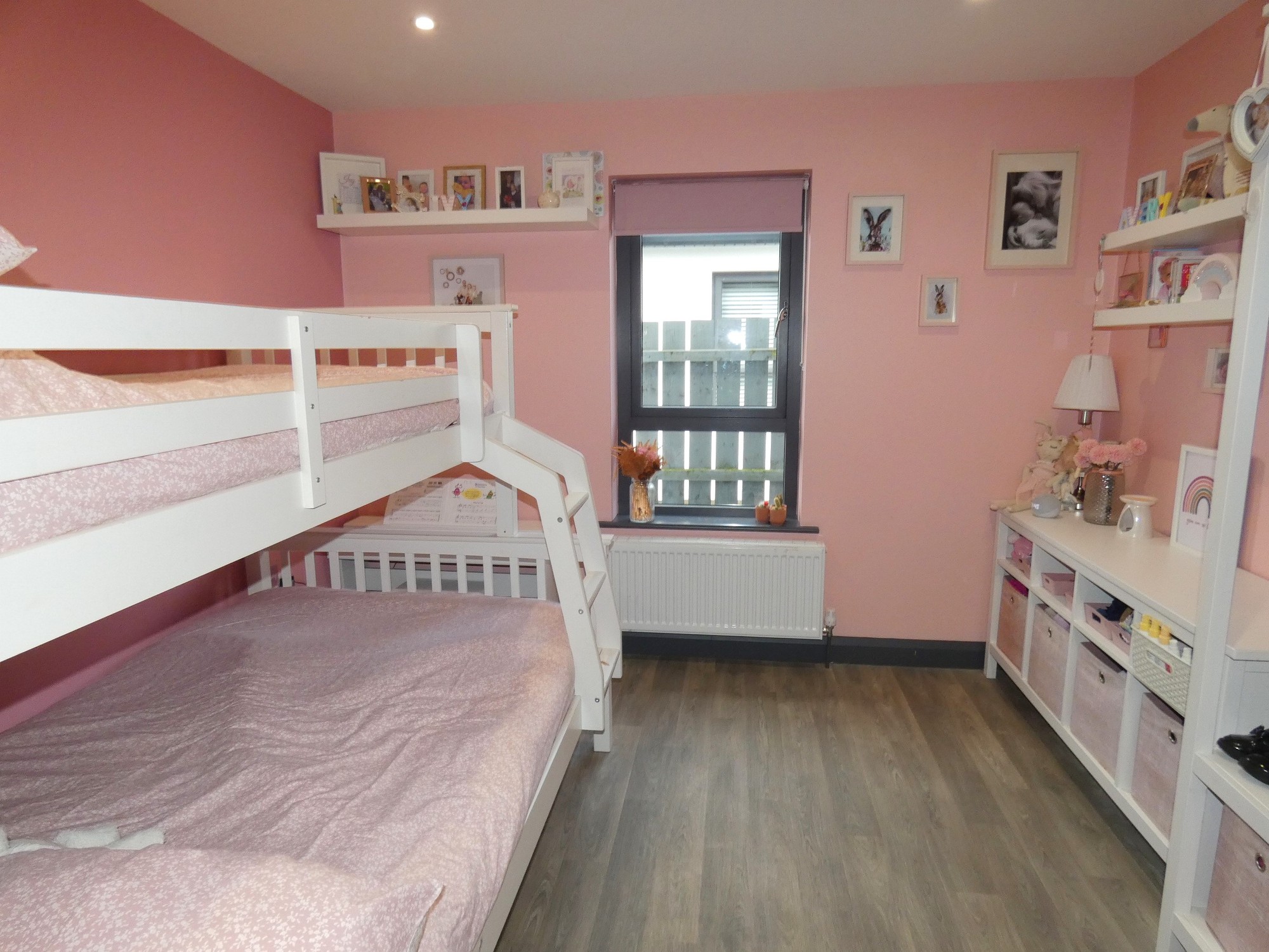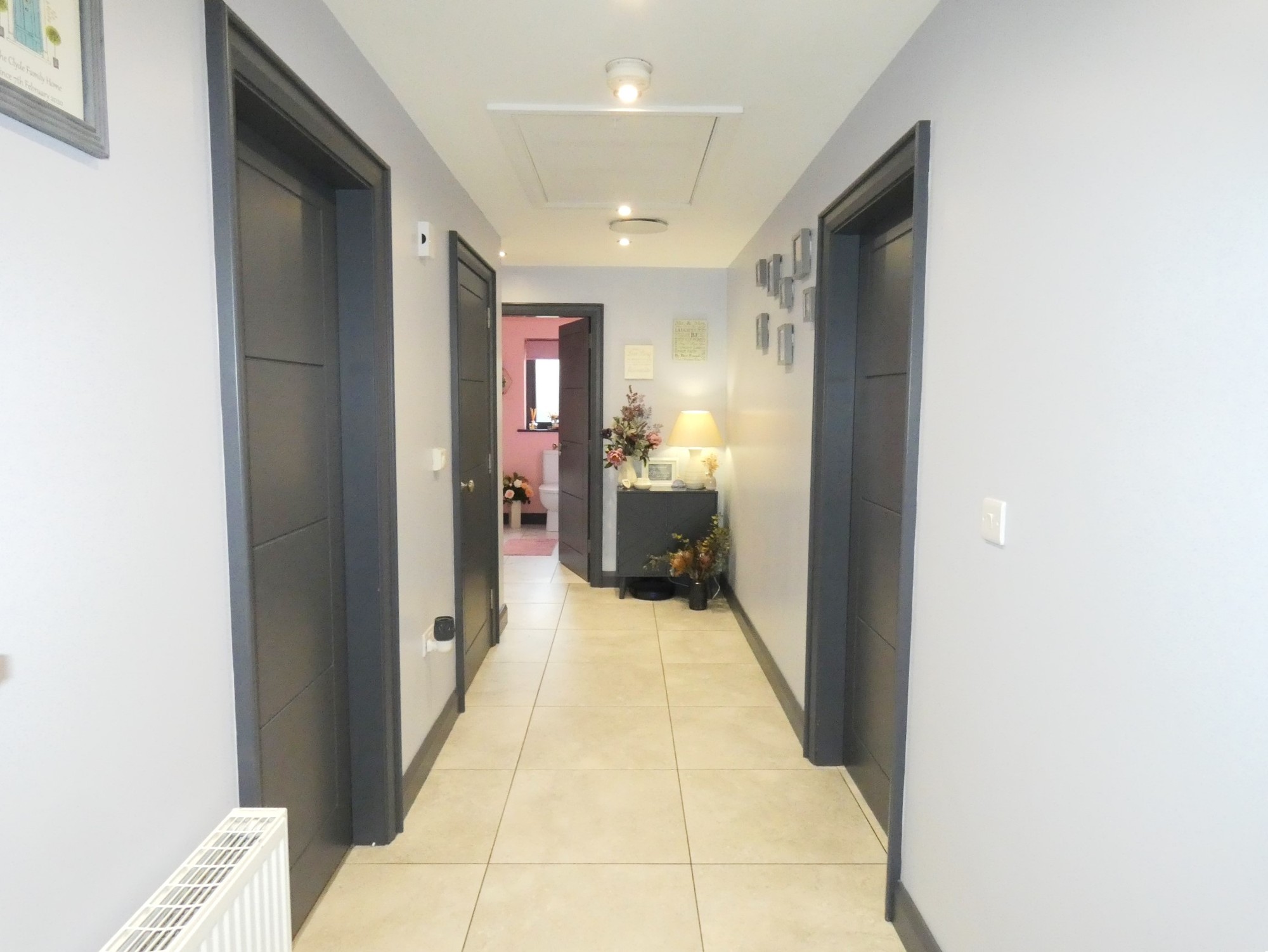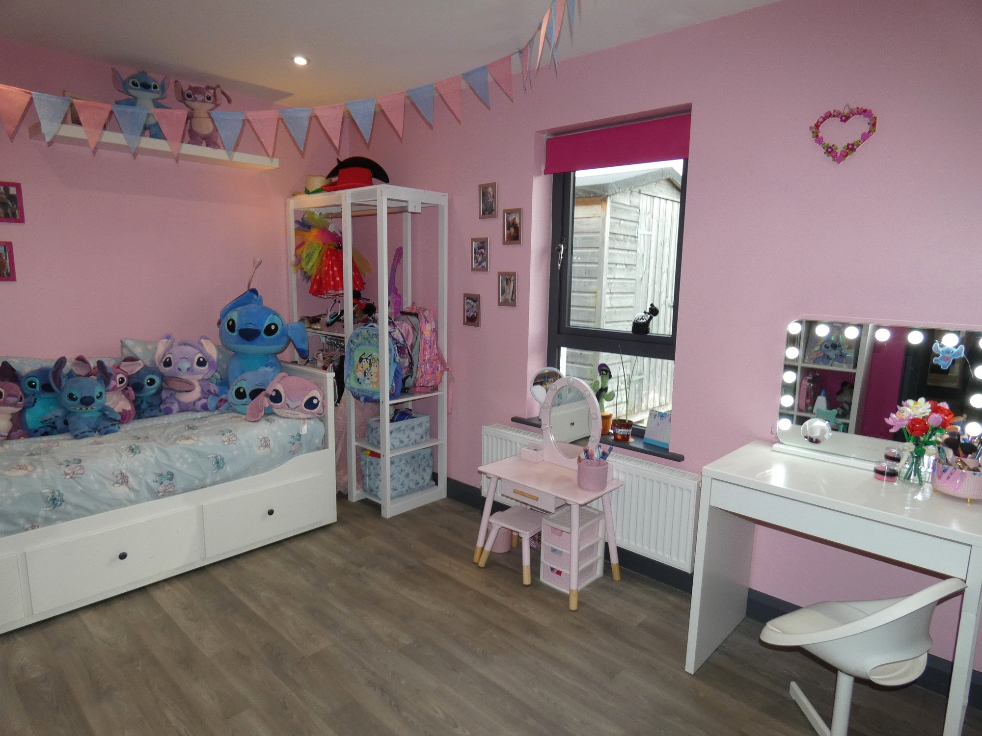 With ceiling downlights, double sockets (suitable for double bed) and light switches, T.V. point, Ensuite with thermostatic shower, tiled cubicle, w.c, wash hand basin, storage cupboards below wash hand basin, touch control led mirror, heated towel rail, tiled floor, ceiling downlights, extractor fan, additional storage cupboards.