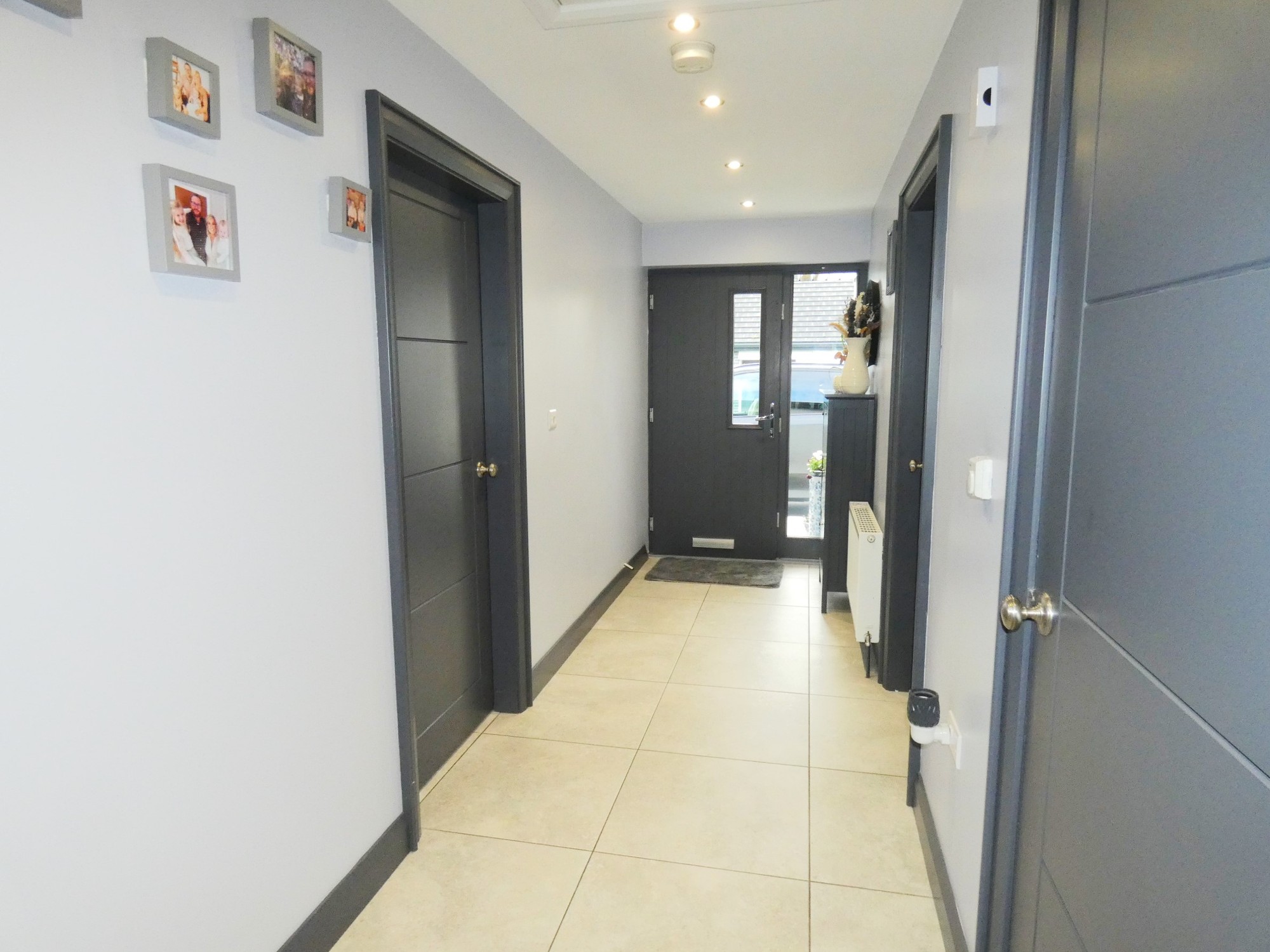 Tiled floor, upvc entrance door with side panel, ceiling downlights, access to roofspace storage via slingsby type ladder - roofspace is mainly floored with light.