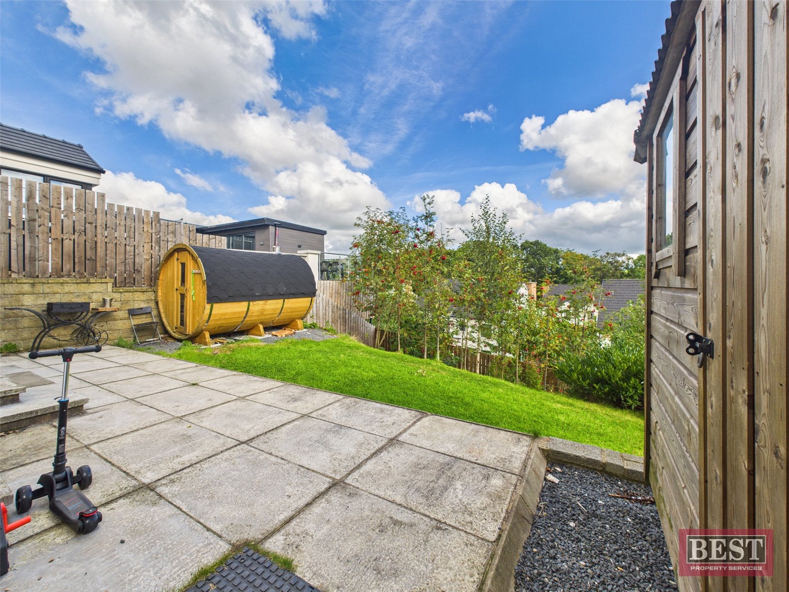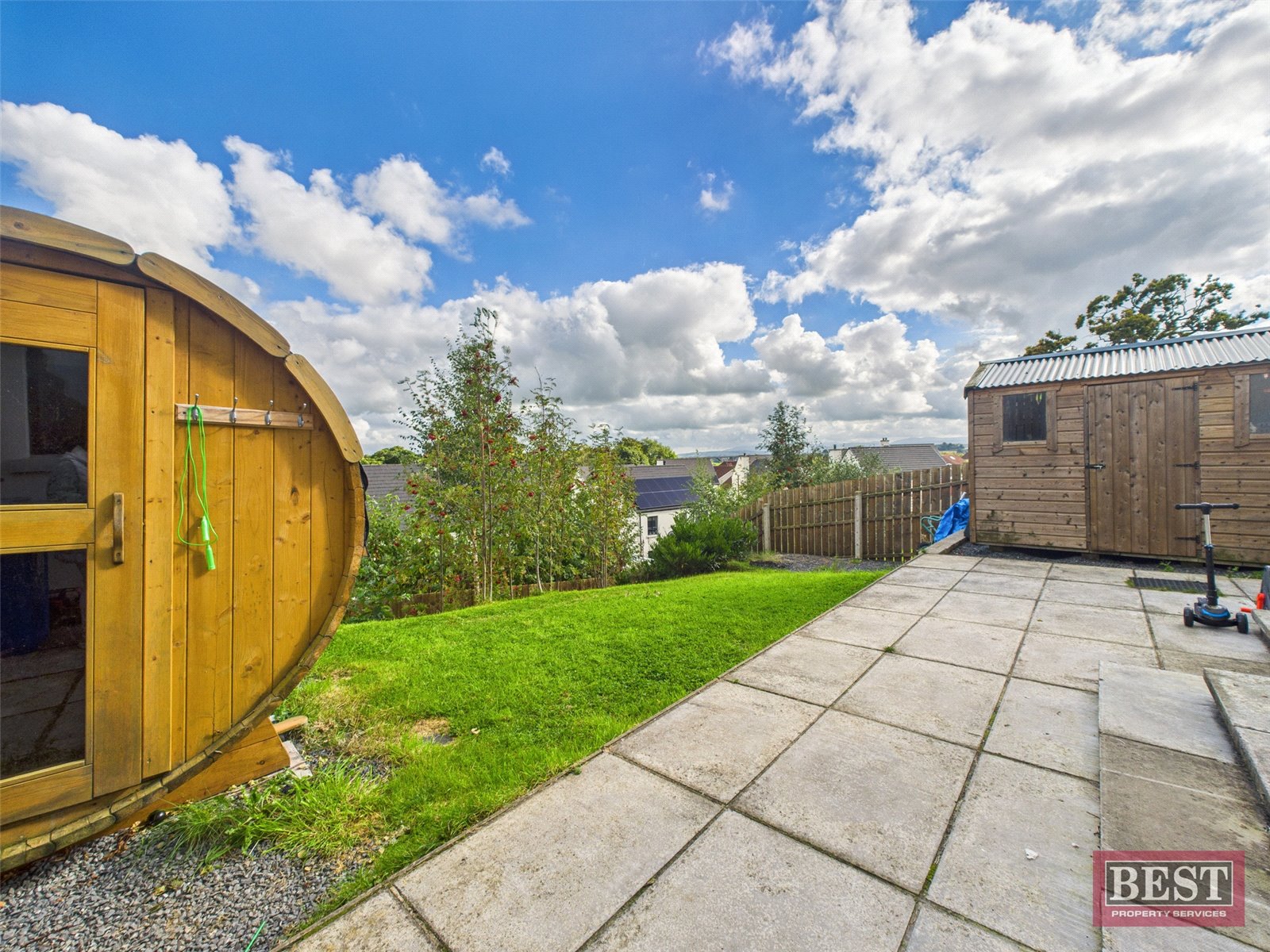 Externally to the front there is mature plants and shrubs with a tarmac driveway providing off-street parking. To the rear there is a garden laid in lawn with a timber shed and timber fencing to the sides and rear boundaries.