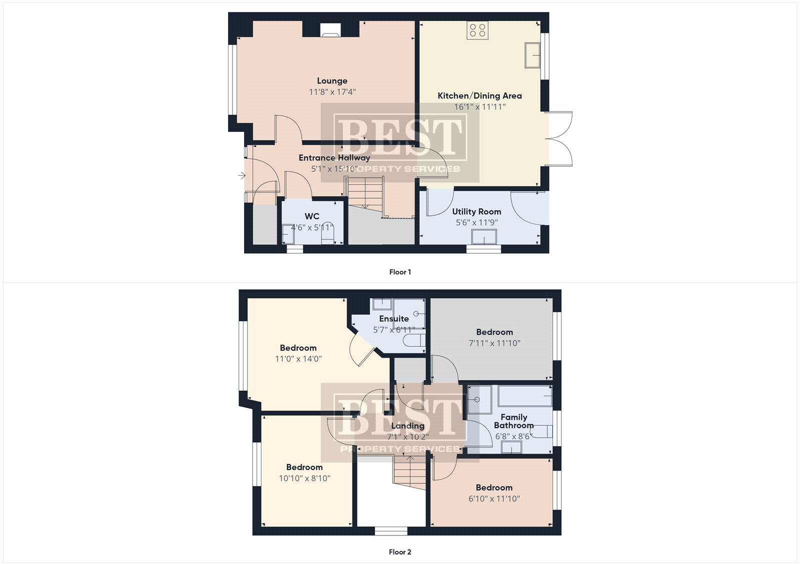 On the First Floor the Accommodation comprises of 4 well-proportioned Bedrooms and the main Bedroom has an Ensuite Shower Room. The Family Bathroom consists of a three piece suite with a separate fully tiled shower cubicle.