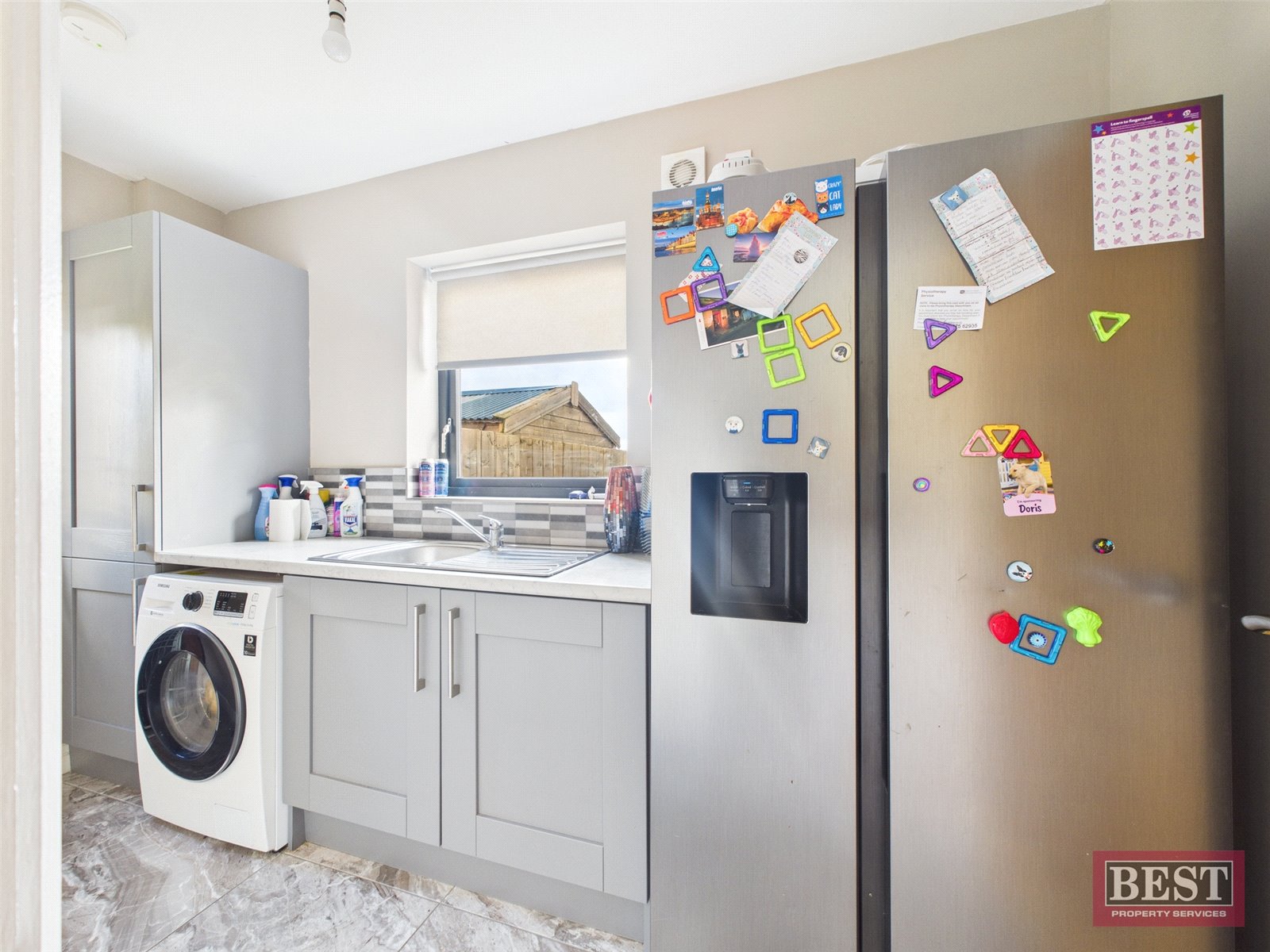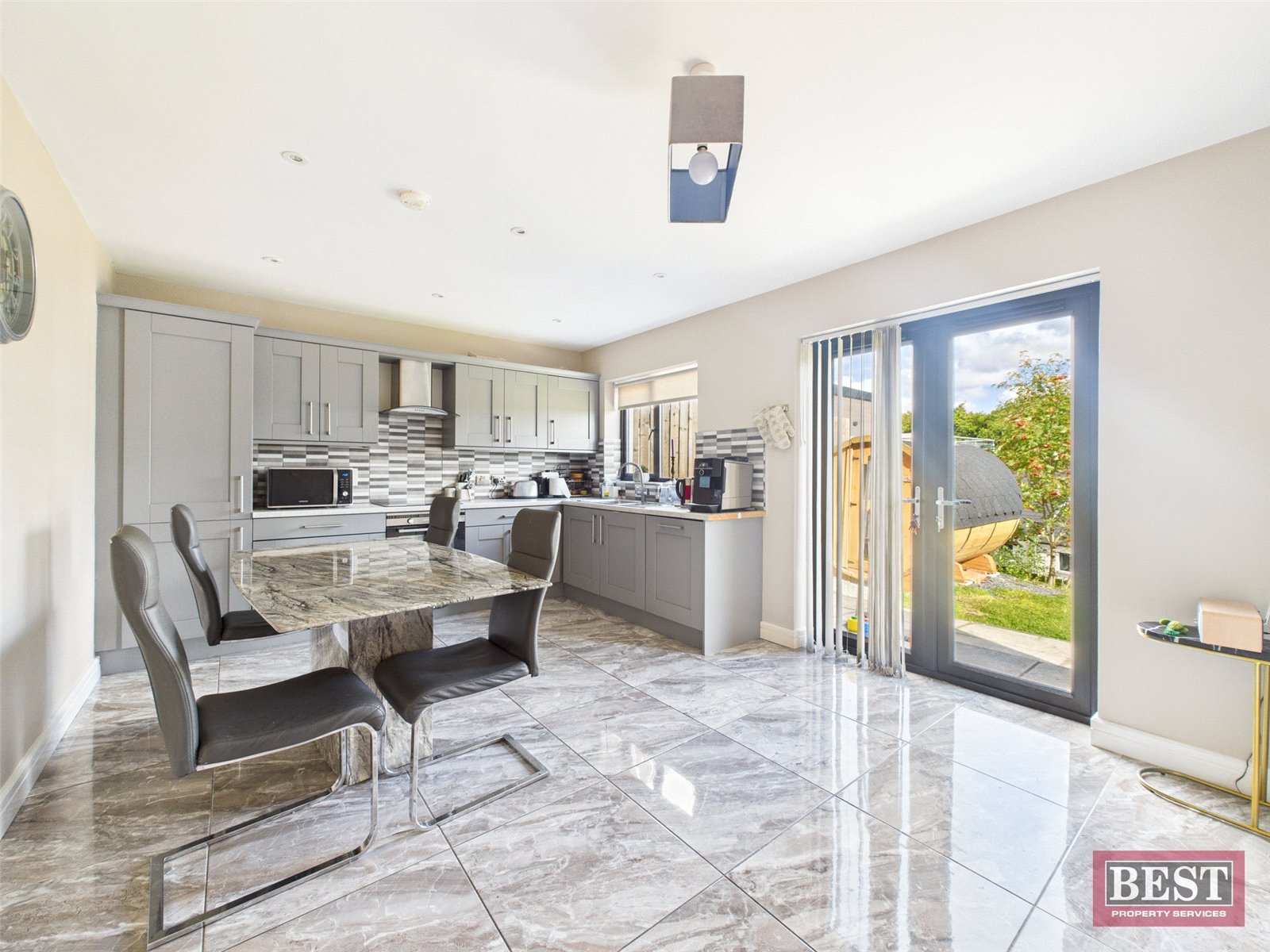 Internally the property comprises on the ground floor of a Spacious Entrance Hall with Cloakroom and Separate W.C., Lounge with laminate flooring and a wood burning stove. To the rear you will find an Open Plan Kitchen/Dining Area which has modern fitted units and integrated electrical appliances such as dishwasher, hob and oven and has double doors leading to the rear garden. The utility room has fully fitted upper and lower level units and access to the rear of the property.