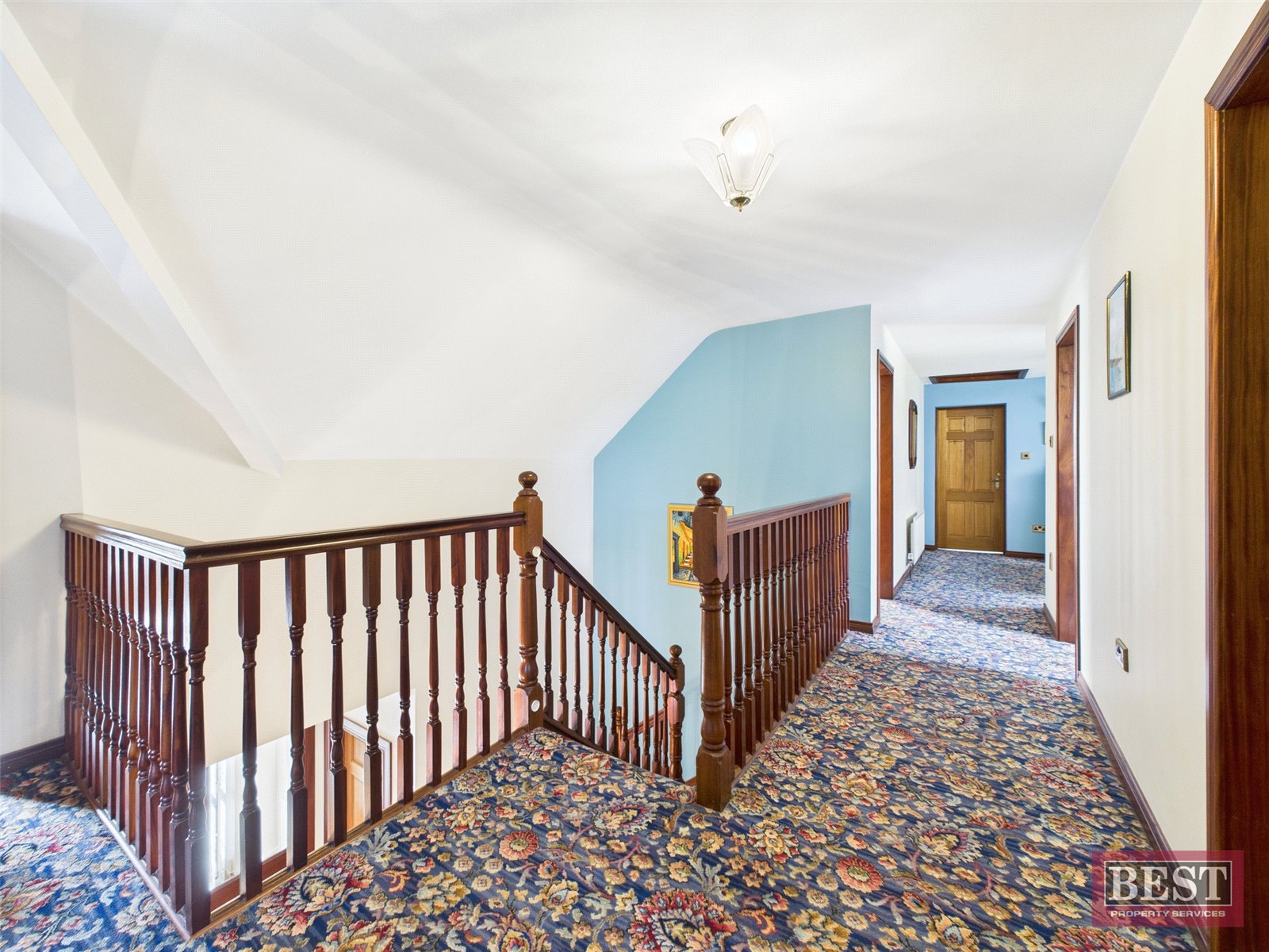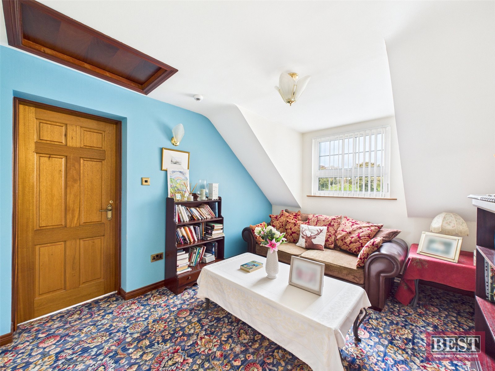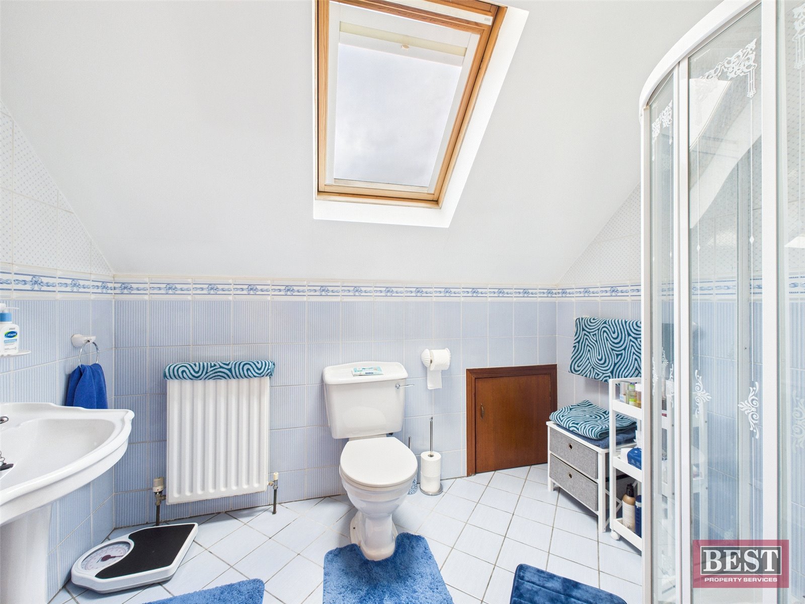 Upstairs, the property continues to impress with five well-proportioned bedrooms. The principal bedroom features built-in sliderobes, while another benefits from an adjoining dressing room, with three remaining bedrooms on this level. The first floor also includes a fully tiled shower room with a modern white suite and separate shower cubicle. A bright landing area with a walk-in hot press and cosy reading nook completes the first floor.