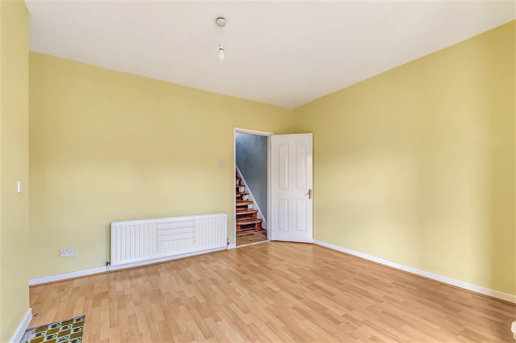 Bay window, laminate wood flooring, cast iron fireplace tiled inset & hearth, open fire, cast iron radiator, storage cupboard.