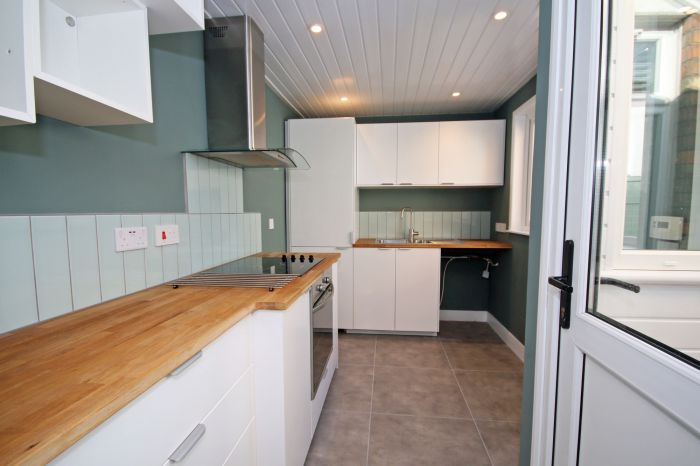 Ground Floor - Entrance hall, two reception rooms, fitted kitchen with built-in oven and hob and fridge freezer.
