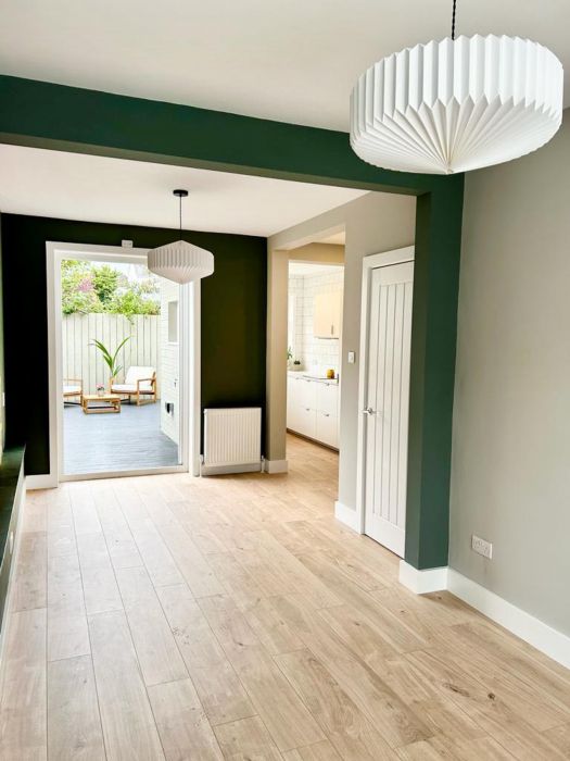 Ground Floor: Entrance hall, living/dining room with patio door to rear decked area, newly fitted kitchen.