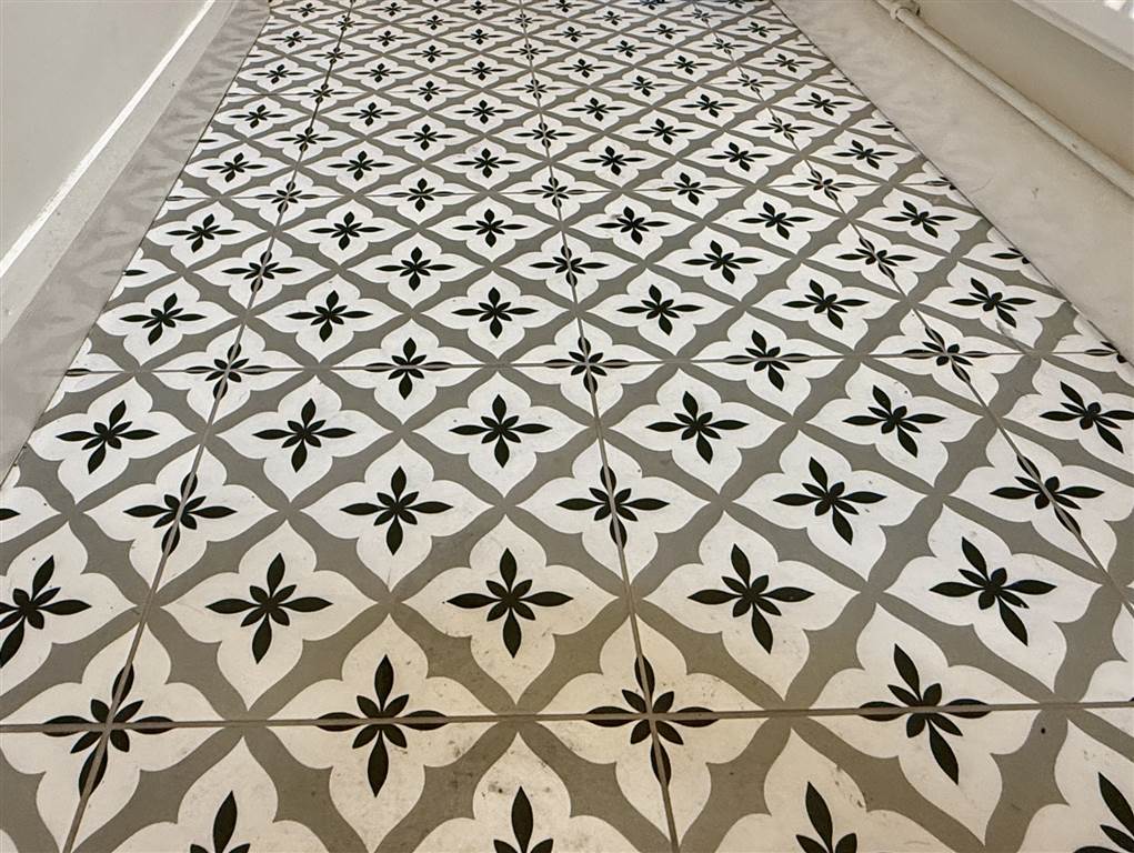 Front door to entrance hall, ceramic tiled floor.