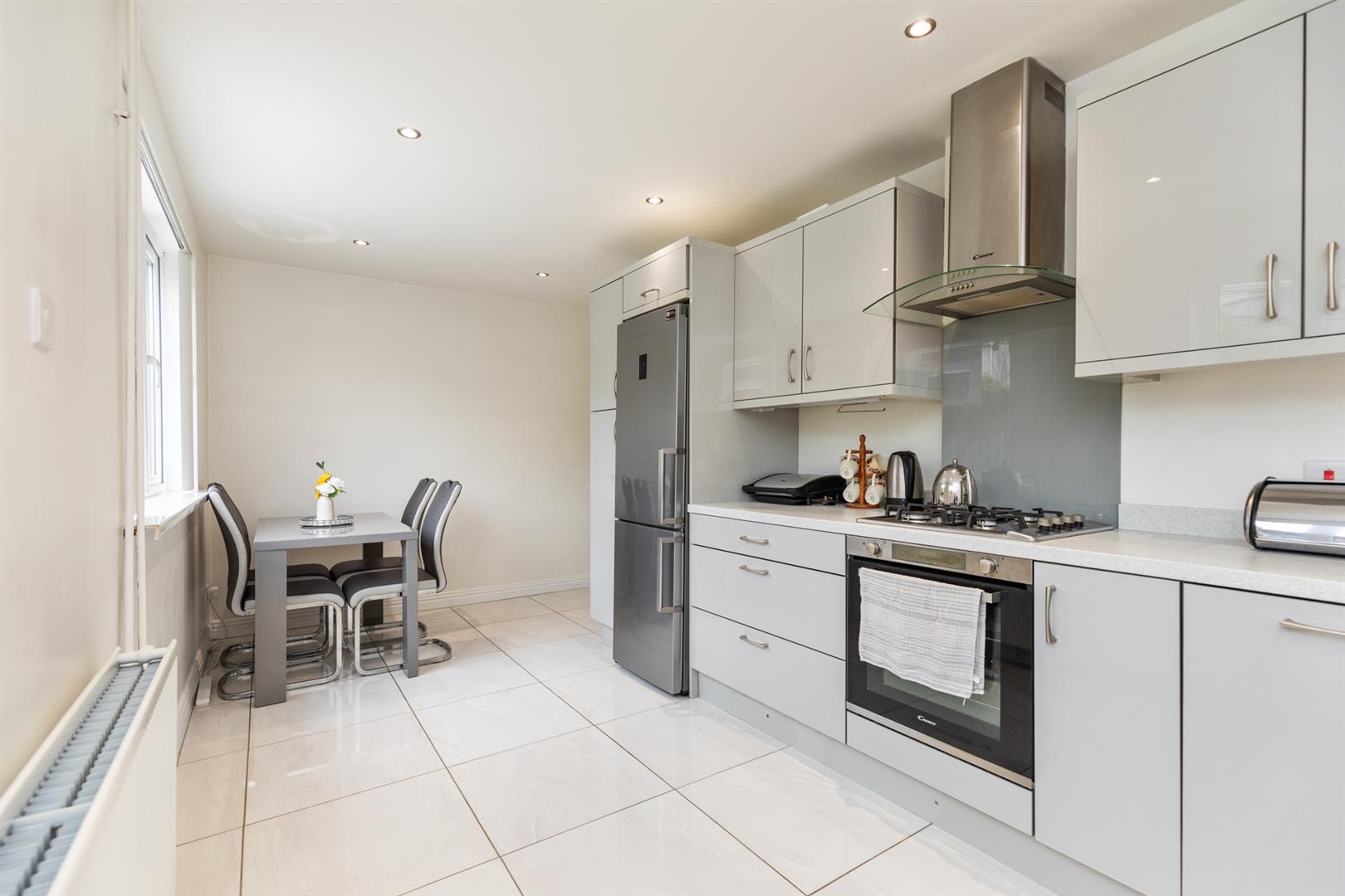 Excellent range of high and low level units, stainless steel sink unit with mixer taps, integrated under oven with 4 ring gas hob and stainless steel extractor fan, plumbed for washing machine, space for fridge/freezer, fully tiled flooring, recessed spotlighting, open to dining area.